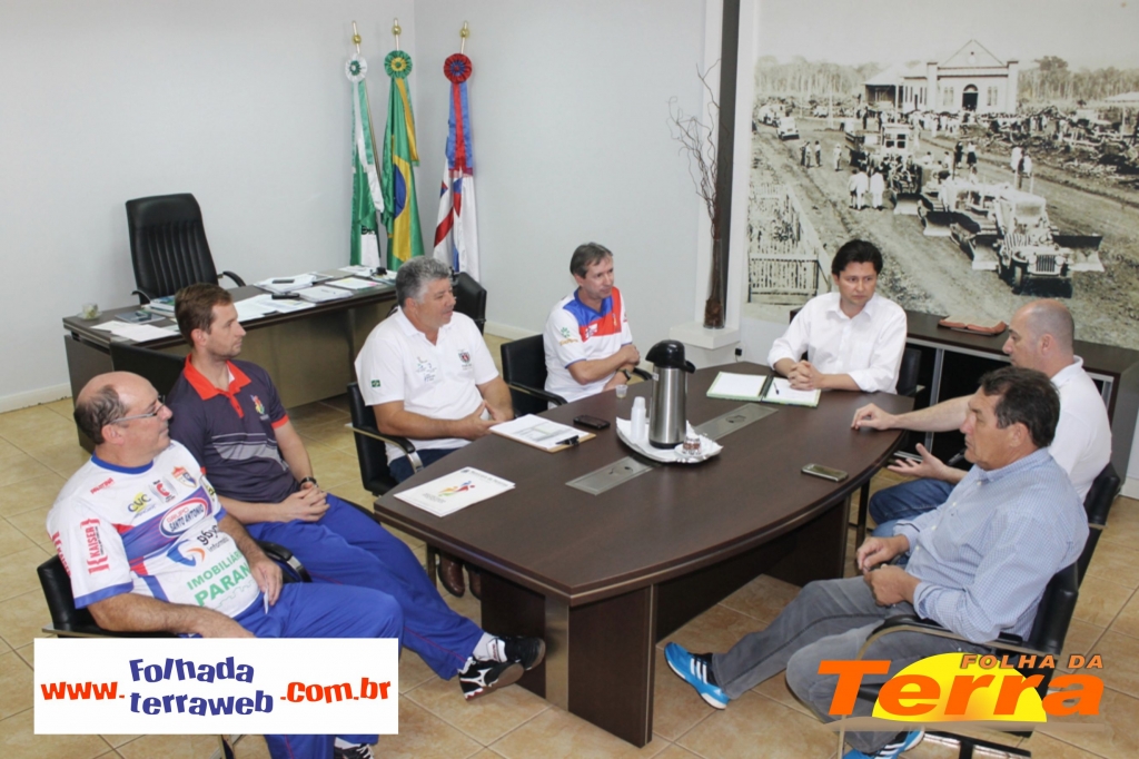 Palotina - Na quarta-feira, dia 26, o prefeito de Palotina Jucenir Stenzler e o vice-prefeito Chico Brum receberam no gabinete municipal, os coordenadores técnicos dos Jogos Abertos do Paraná (Jap’s), ligados à Secretaria Estadual de Esporte e Turismo, Milton Trindade Junior e Emerson Venturine acompanhados da equipe da Secretaria Municipal de Esportes, Sérgio Formighieri, Alcione Dotto e Silvanir Rosseto.