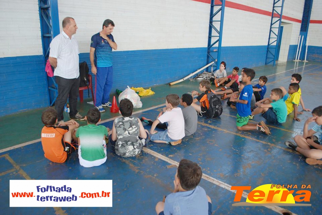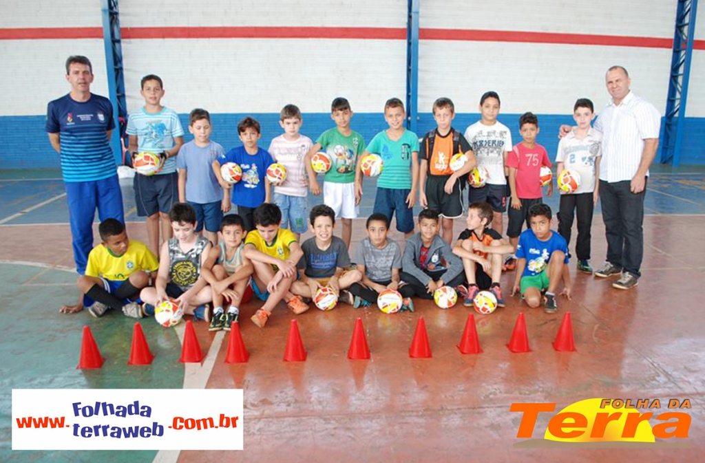 Foram entregues bolas e cones ao professor Paulo Scussel que realiza os treinamentos naquela escola.