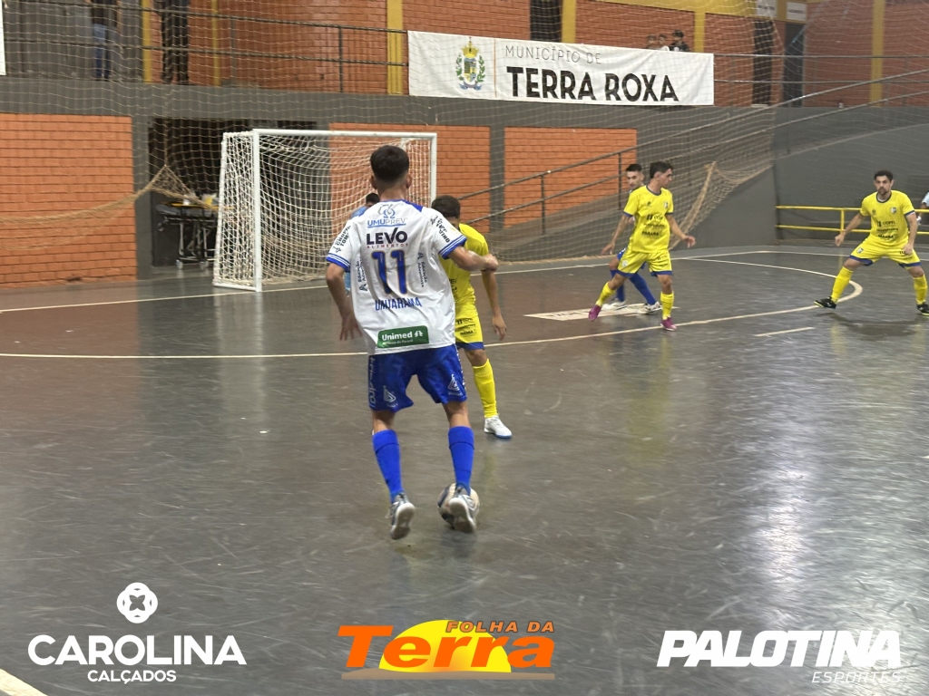 No primeiro, disputado, em casa, empatou em 2x2 com a equipe do Umuarama, que disputará a Liga Nacional e a Chave Ouro. Os gols da equipe terra-roxense foram marcados por Douglas e Perachi.