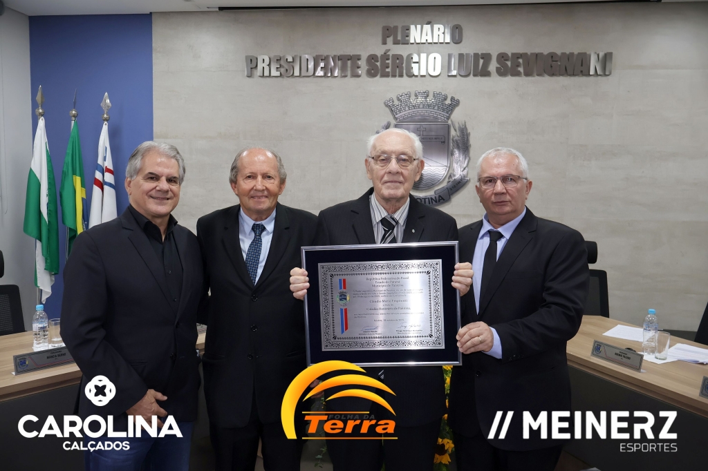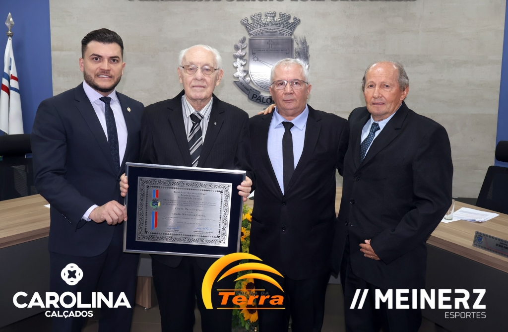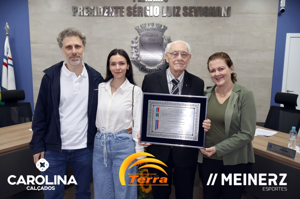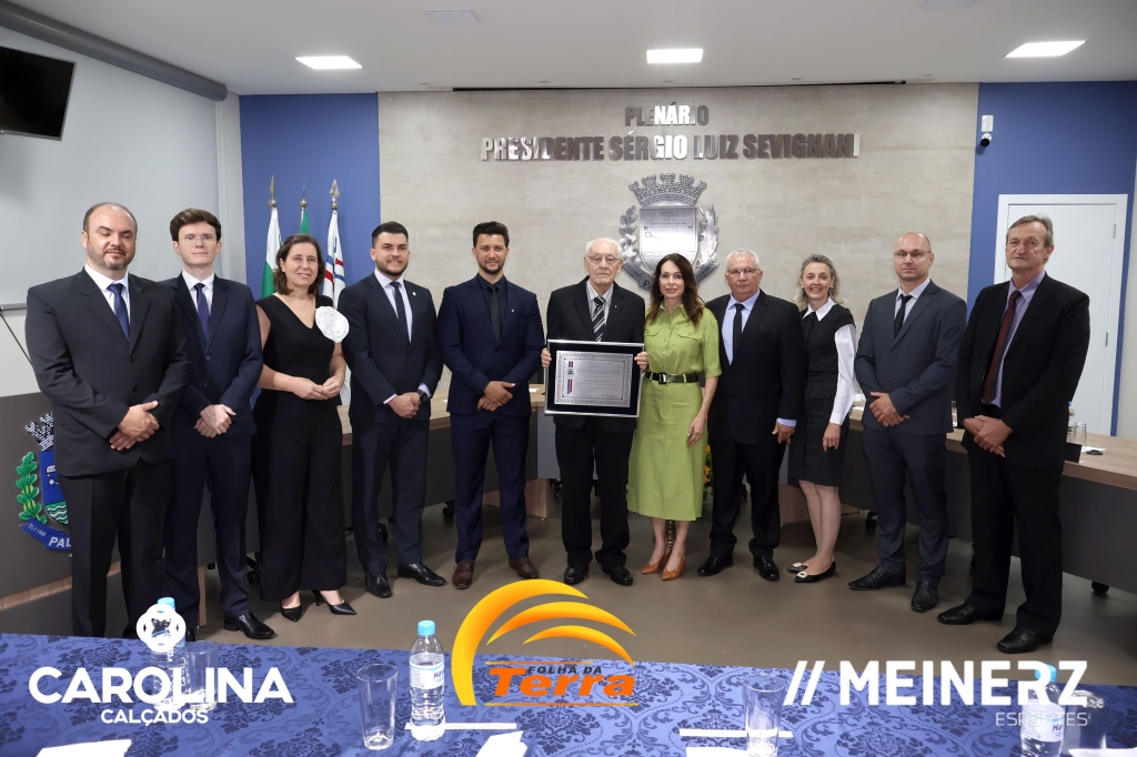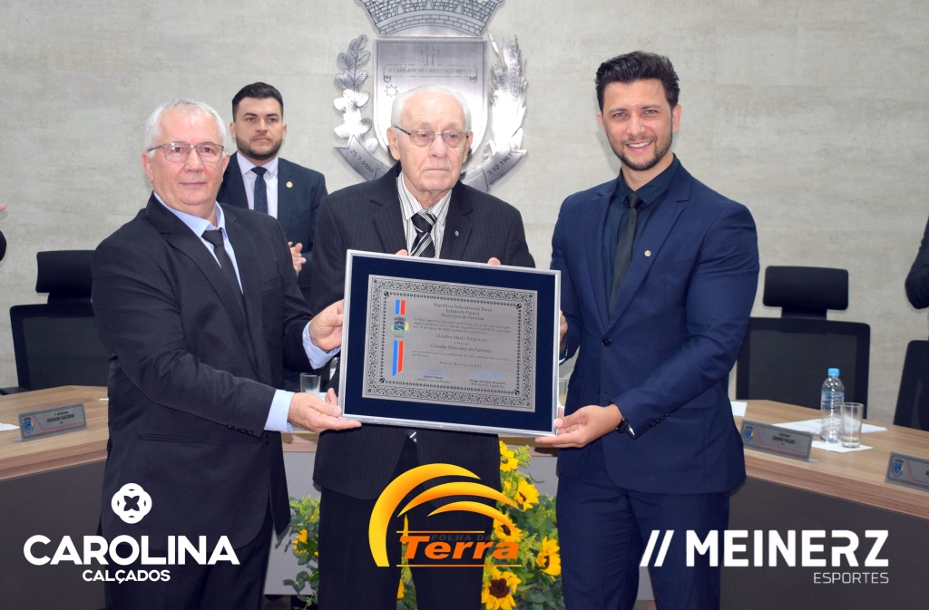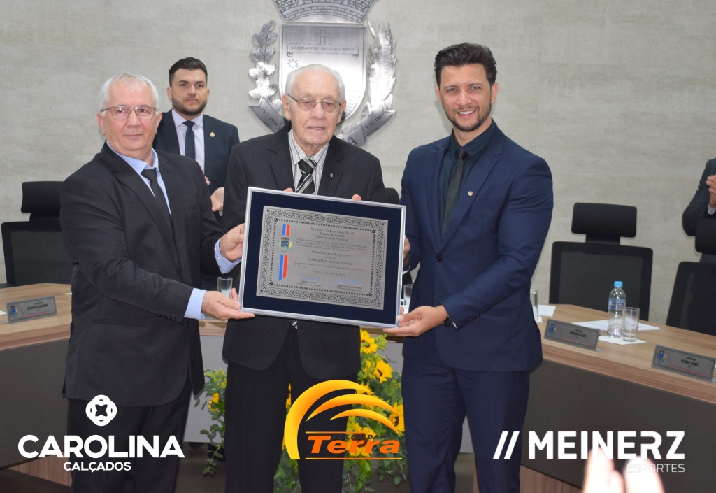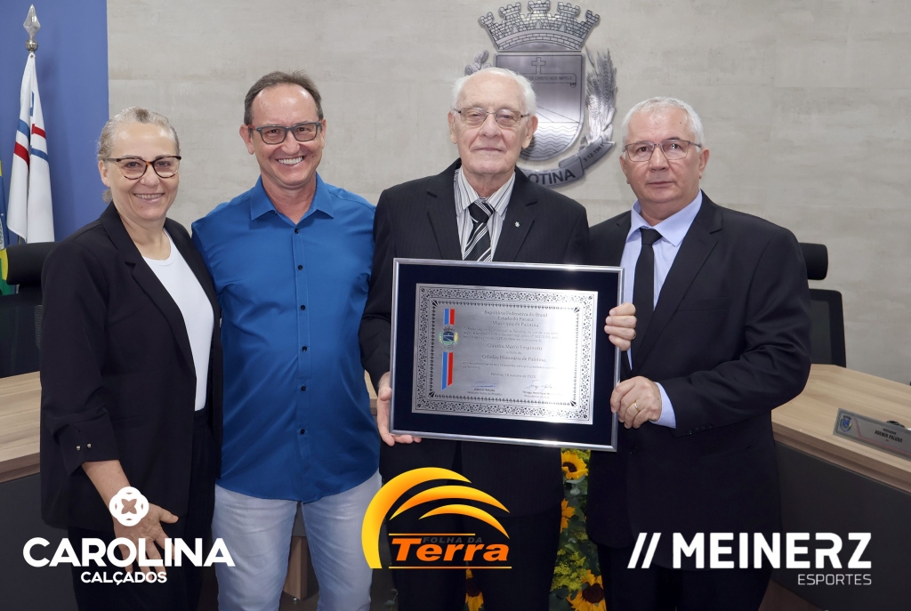 Palotina - A Câmara Municipal de Palotina realizou na manhã de sábado, dia 18, uma Sessão Solene para a entrega do Título de Cidadão Honorário ao Engenheiro Agrônomo Cláudio Mário Empinotti, em reconhecimento aos relevantes serviços prestados ao desenvolvimento do município.