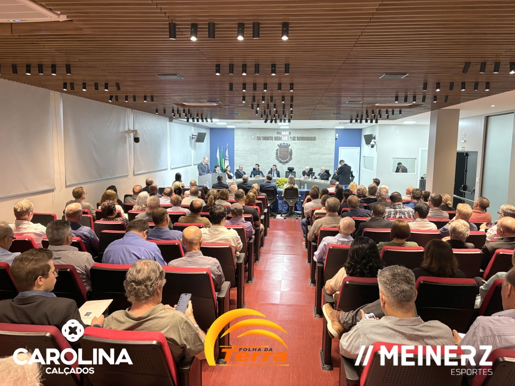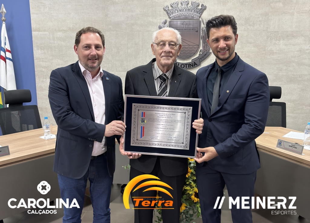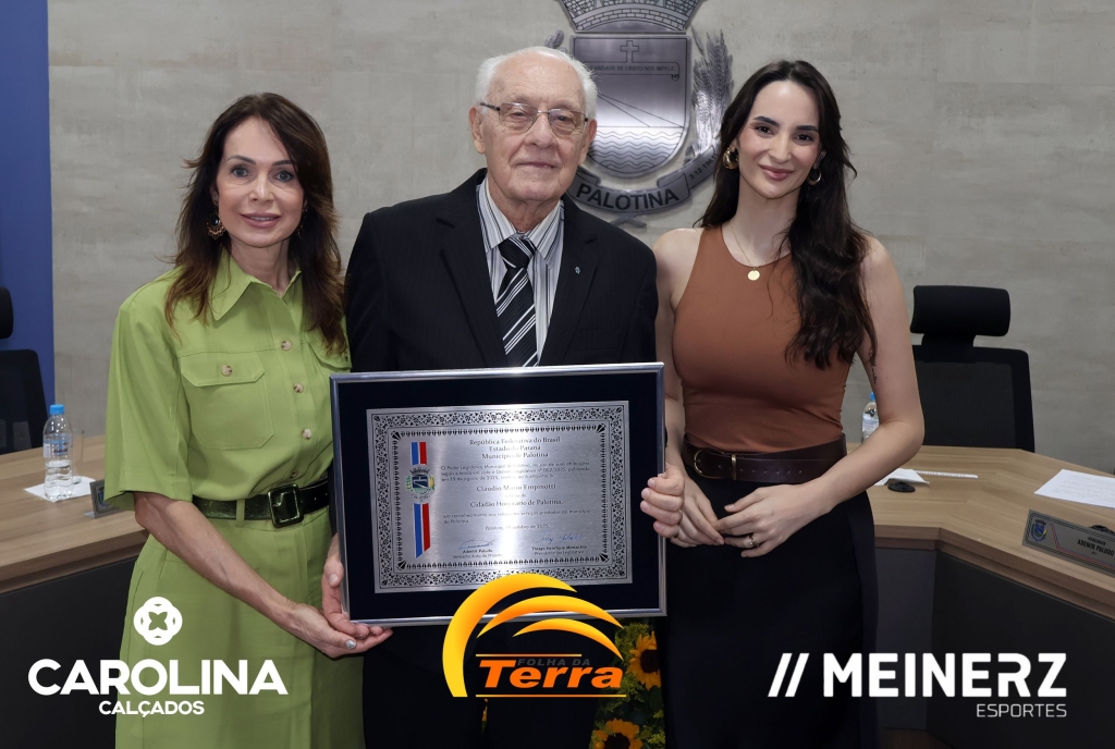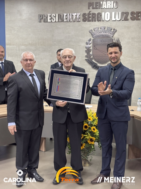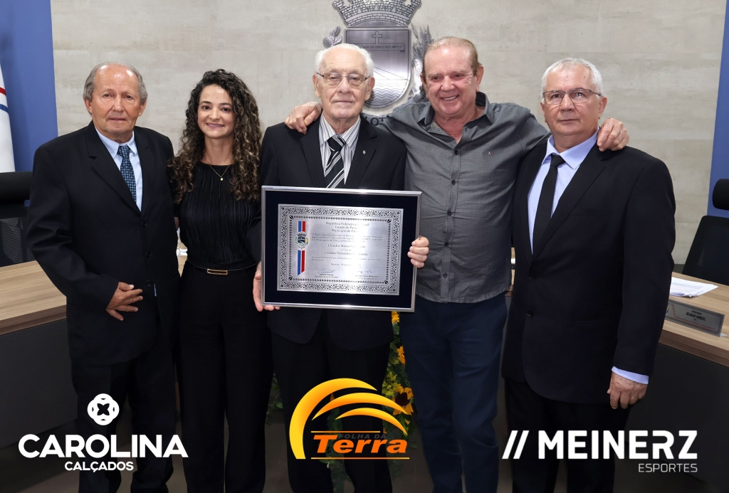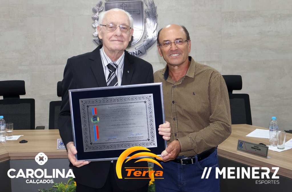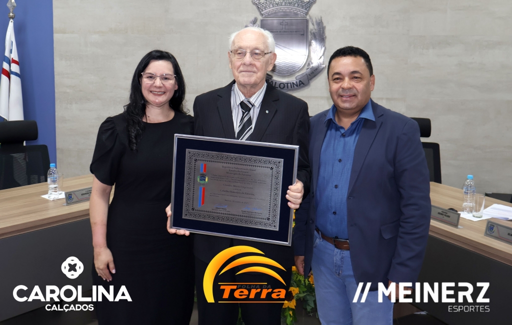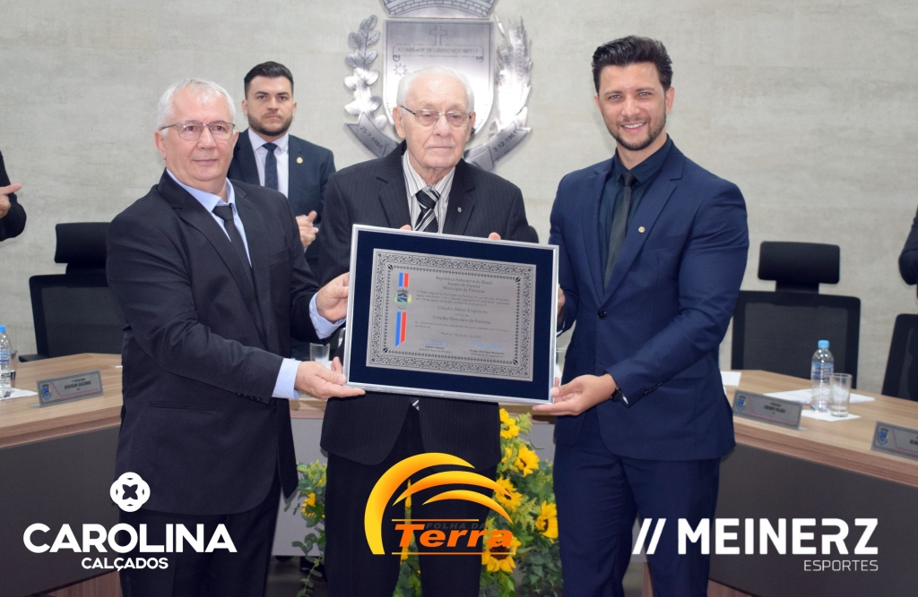 Palotina - A Câmara Municipal de Palotina realizou na manhã de sábado, dia 18, uma Sessão Solene para a entrega do Título de Cidadão Honorário ao Engenheiro Agrônomo Cláudio Mário Empinotti, em reconhecimento aos relevantes serviços prestados ao desenvolvimento do município.