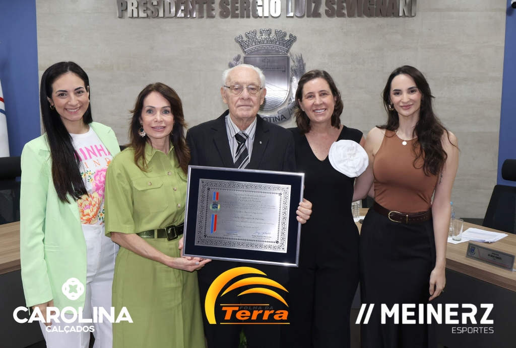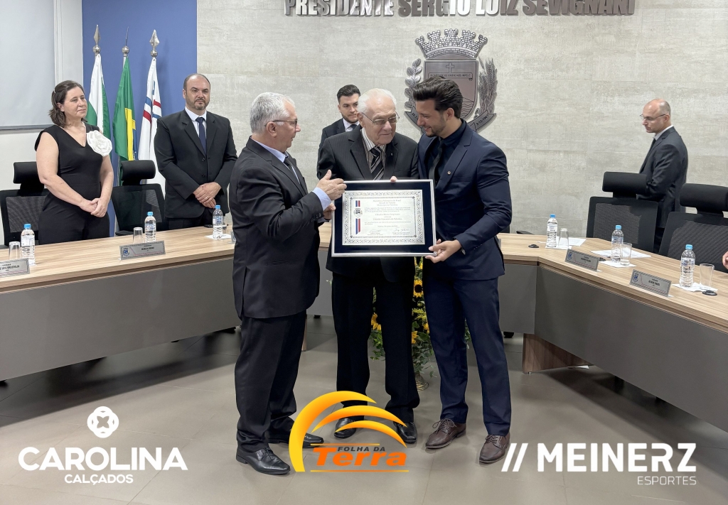 O projeto que concedeu o título foi de autoria do vereador Ademir Paludo e foi aprovado por unanimidade pelo plenário da Câmara.