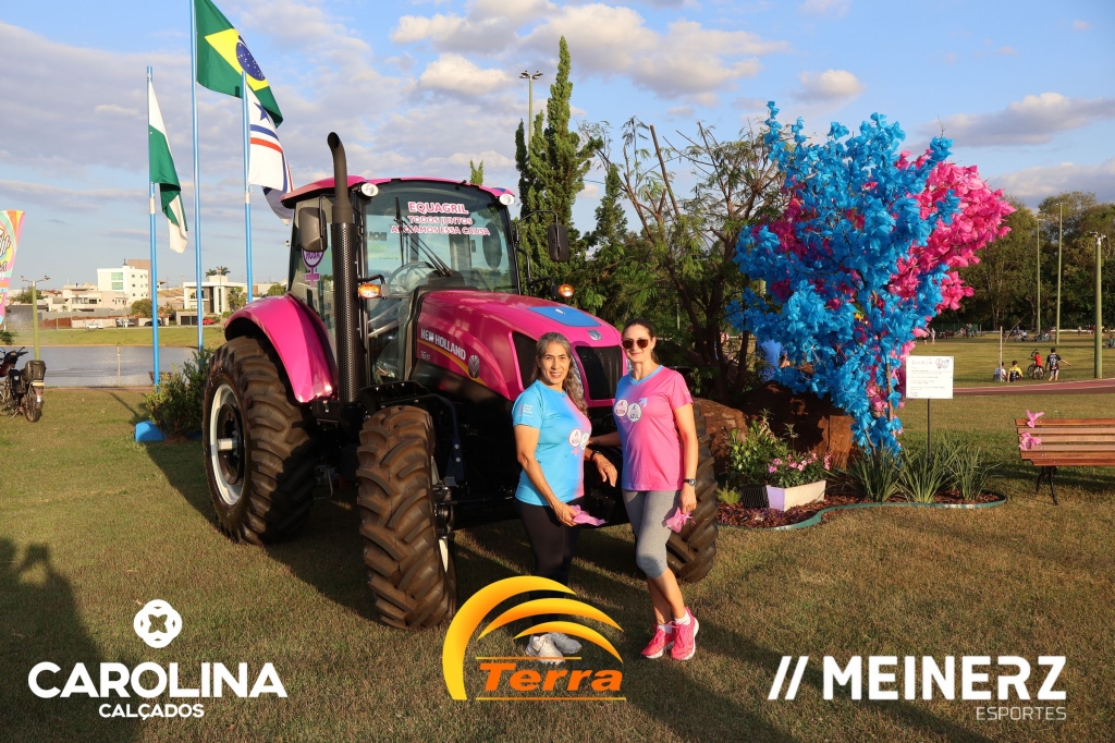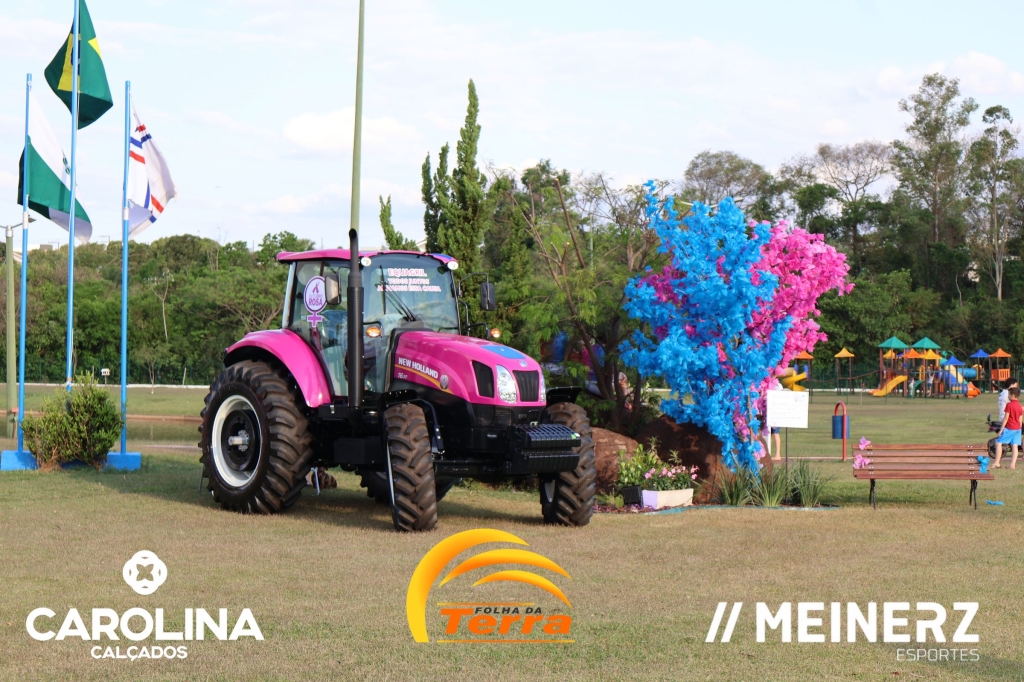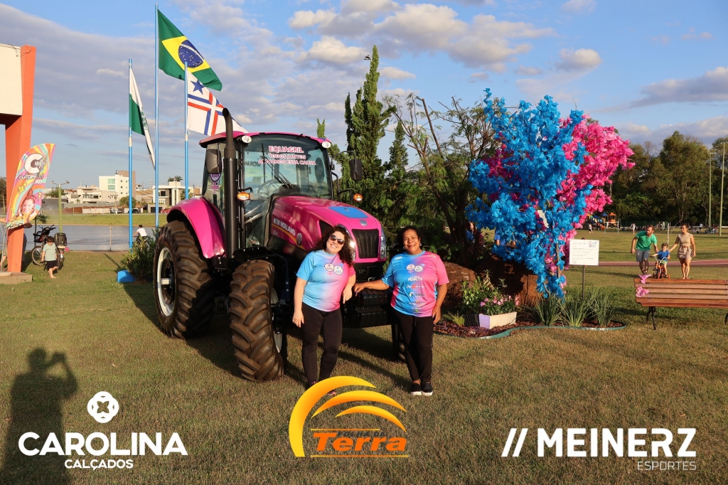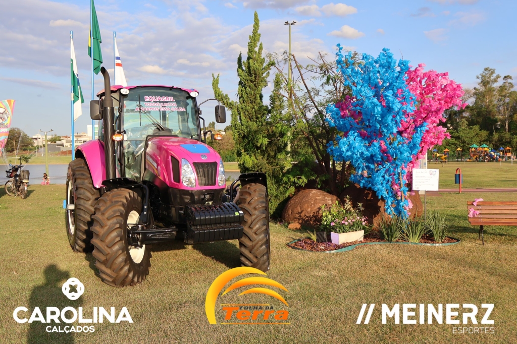 Um trator com as cores rosa e azul, disponibilizado pela Equagril, esteve presente durante o evento e chamou muito a atenção de todos que foram até o local.