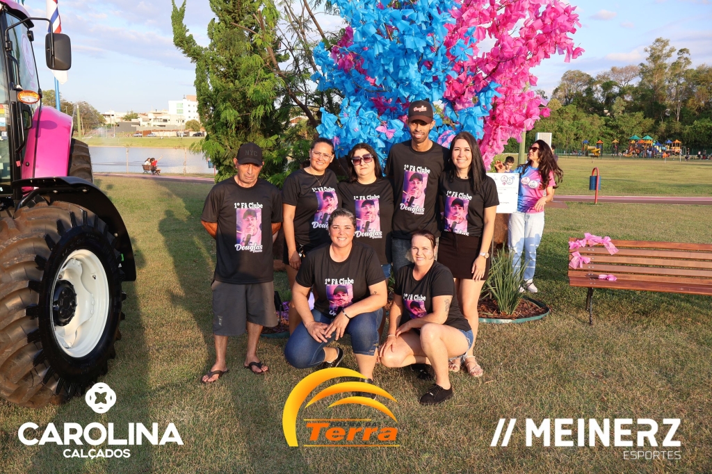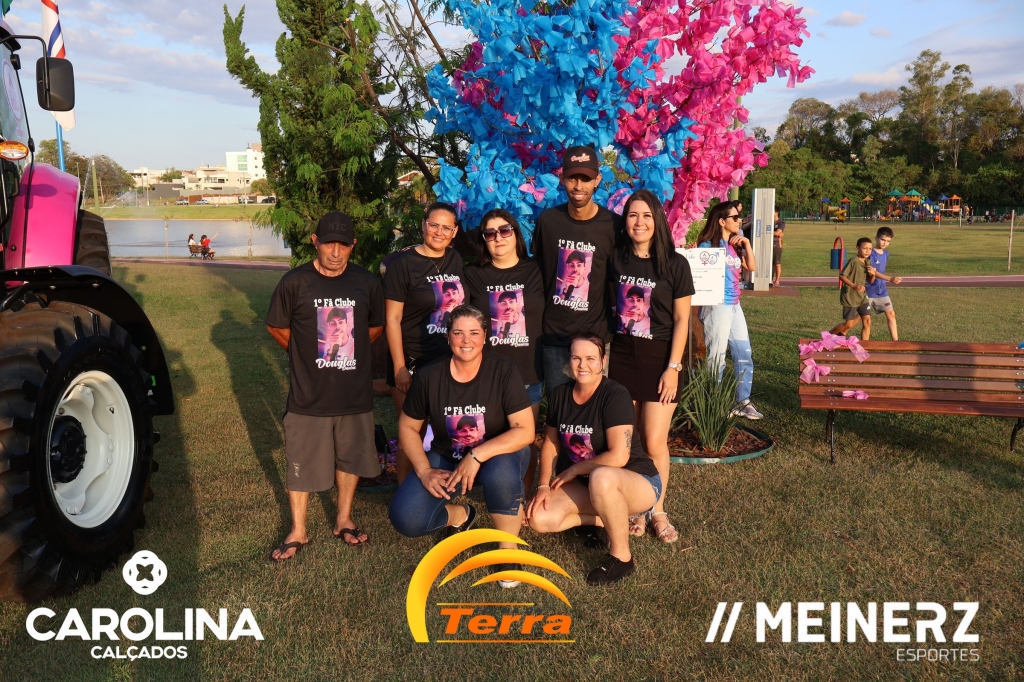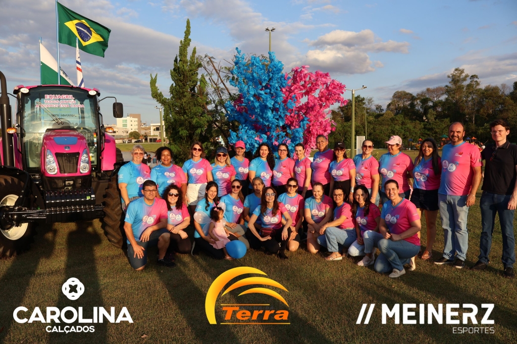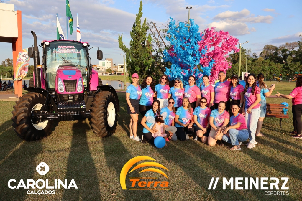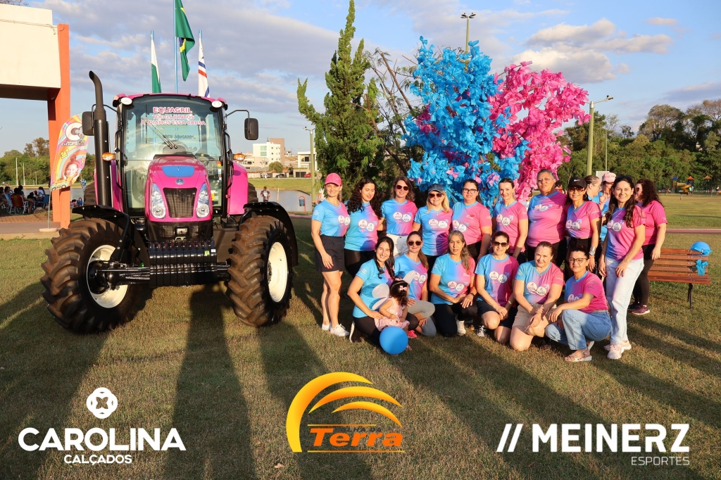 Um trator com as cores rosa e azul, disponibilizado pela Equagril, esteve presente durante o evento e chamou muito a atenção de todos que foram até o local.