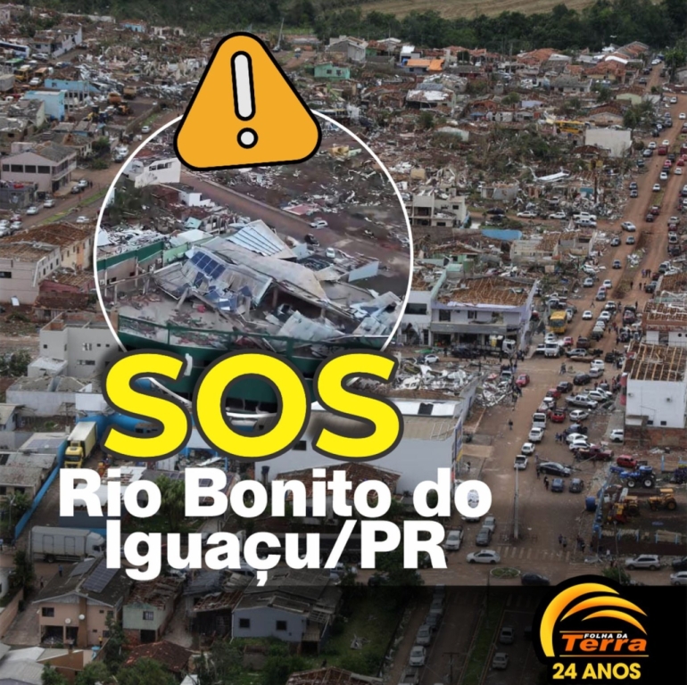 Palotina - O Corpo de Bombeiros de Palotina está com uma ação de arrecadação de alimentos não perecíveis, colchões, cobertores, roupas e produtos de higiene, que serão encaminhados para Rio Bonito do Iguaçu, que na noite desta sexta-feira, dia 7, foi atingida por um tornado com ventos superiores a 250 km, que destruiu 90% da cidade, resultou na morte de 5 moradores e deixou centenas de feridos.