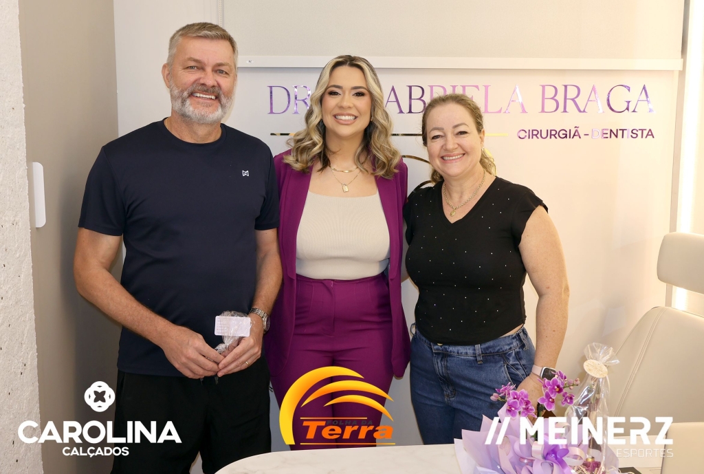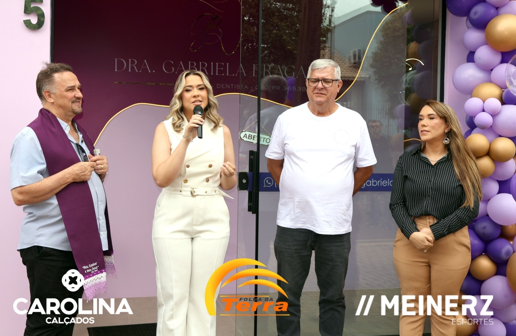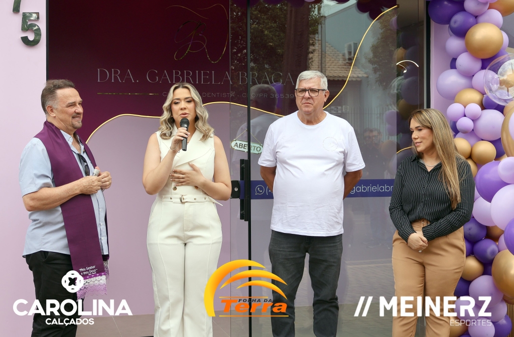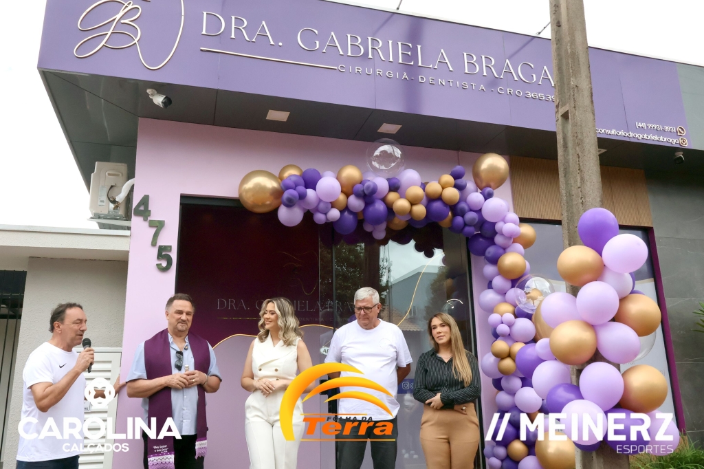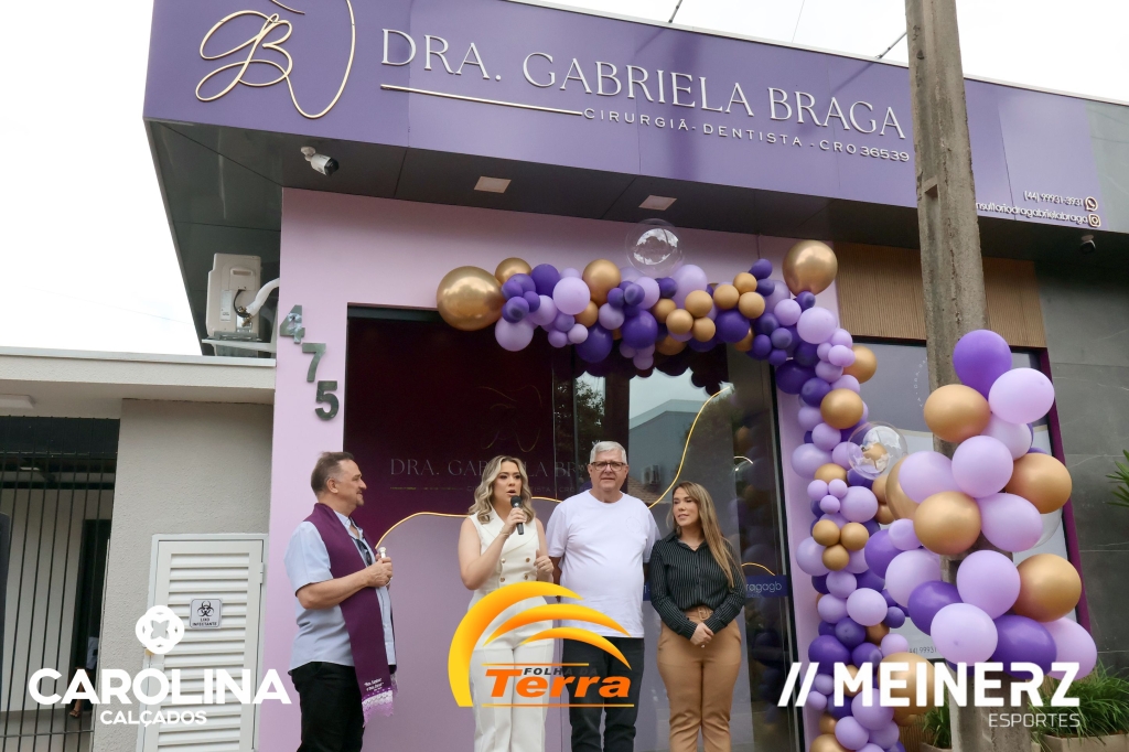 Palotina - Desde o último sábado, dia 8, os palotinenses podem contar com o Consultório Odontológico Dra. Gabriela Braga, localizado na Rua Duque de Caixas, 475, em amplas e modernas instalações, com um atendimento muito especial já conhecido da família Braga. Além disso lá você tem o que há de mais moderno em serviços de Odontologia Clínica Geral, Harmonização orofacial, Facetas em porcelana e resina, Prótese dentária fixa e removível, Restaurações estéticas, Clareamento dental, Tratamento de canal, Cirurgias odontológicas (extração de siso), Implantodontia, Aparelho ortodôntico e Tratamento de difusões temporomandibulares (STM).