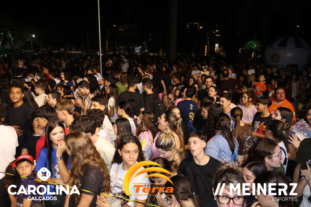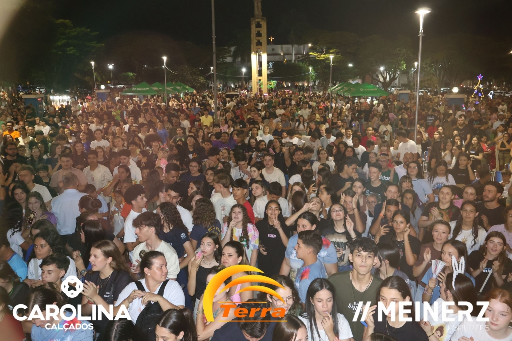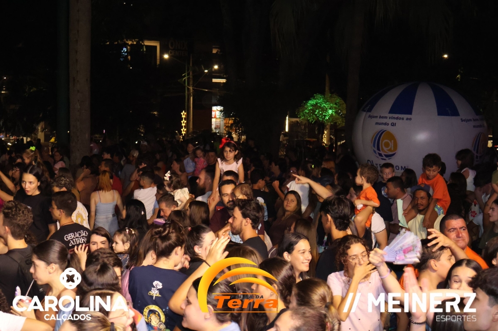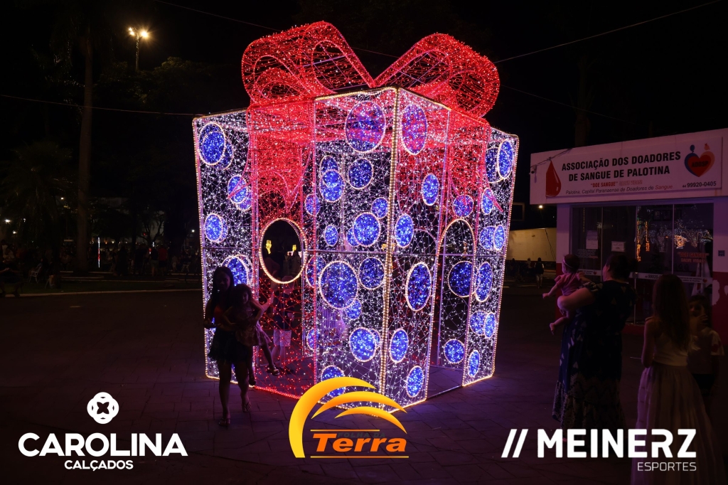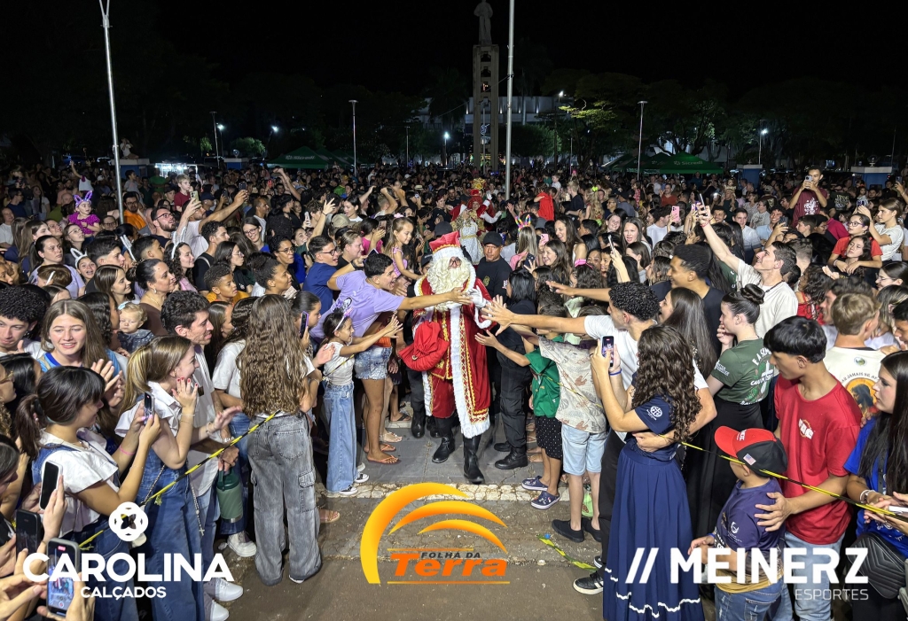 Palotina – Uma verdadeira multidão se fez presente na noite do sábado, dia 22 de novembro, na praça Amadeo Piovesan, para acompanhar o evento que marcou oficialmente o início das celebrações natalinas em Palotina, evento que contou com a presença do Papai Noel e a Mamãe Noel e o acendimento das luzes de Natal.