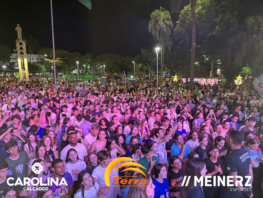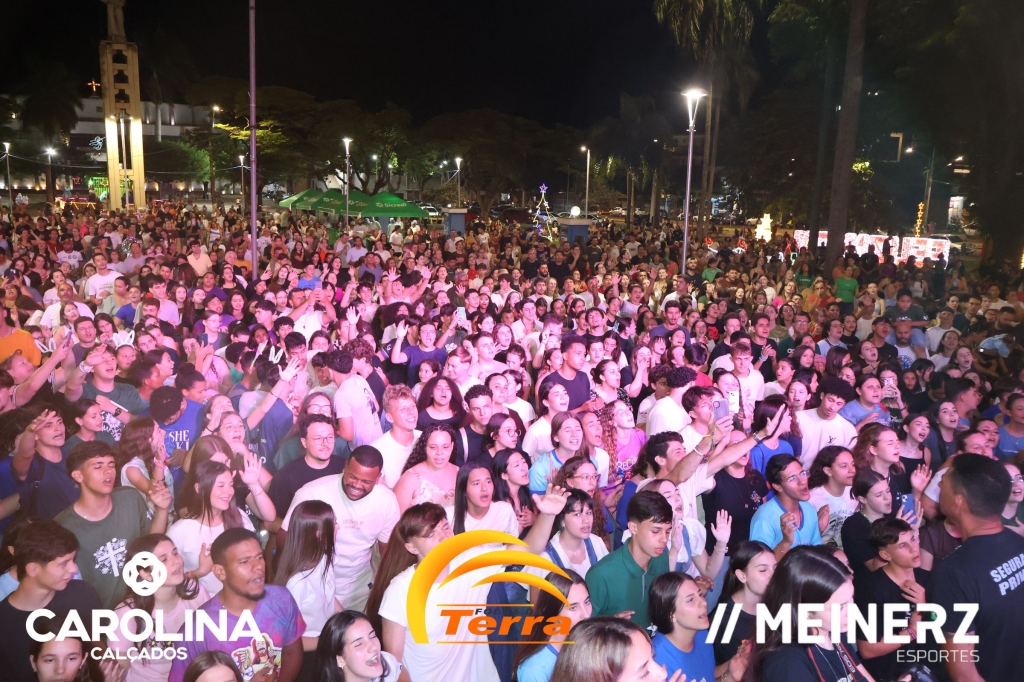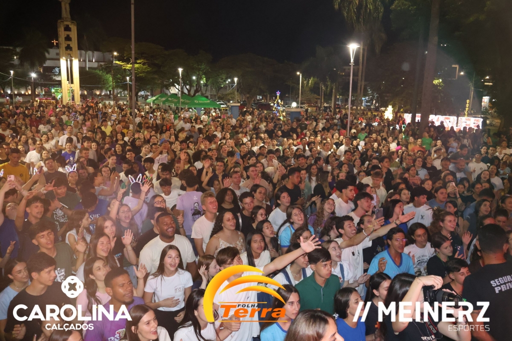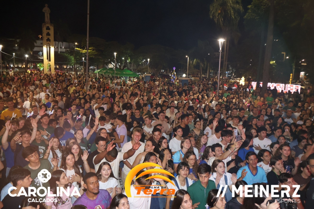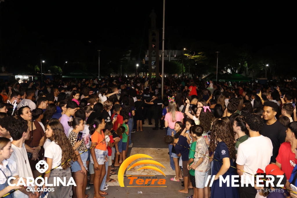 Palotina – Uma verdadeira multidão se fez presente na noite do sábado, dia 22 de novembro, na praça Amadeo Piovesan, para acompanhar o evento que marcou oficialmente o início das celebrações natalinas em Palotina, evento que contou com a presença do Papai Noel e a Mamãe Noel e o acendimento das luzes de Natal.