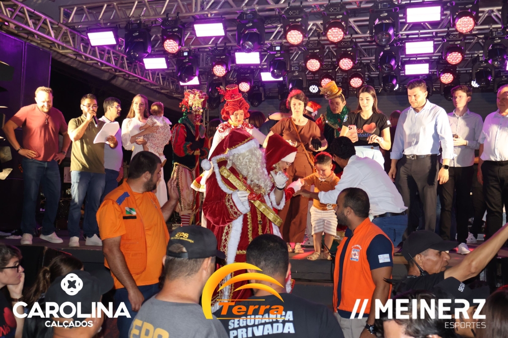 Na oportunidade o prefeito Rodrigo Ribeiro repassou a chave da cidade para o Papai Noel e a Mamãe Noel e em seguida, sob muita expectativa, o prefeito anunciou o acendimento das luzes na praça central. Por fim o Papai Noel e a Mamãe Noel estiveram na sua casinha para receber as crianças, tirar fotos e presenteá-las com balas.