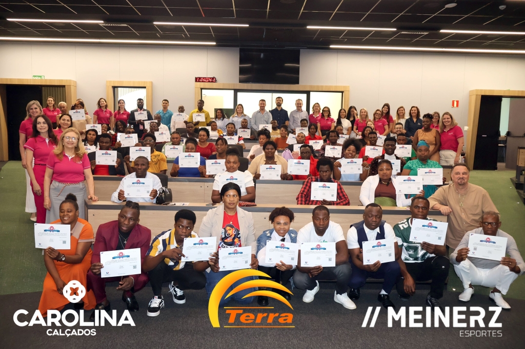 Após mais um ano de estudos, no último sábado, dia 22, aconteceu a cerimônia de formatura com a entrega dos certificados de conclusão, tanto para o curso básico, como para o curso intermediário, com 45 haitianos que concluíram neste ano.
