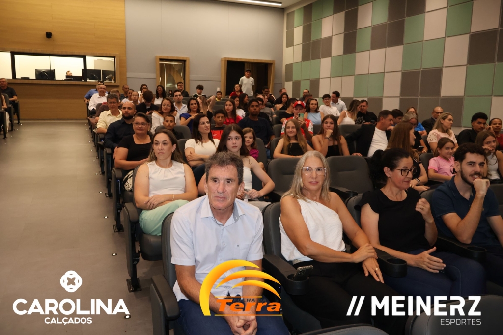 O evento aconteceu no auditório da Sicredi e reuniu autoridades, representantes de entidades esportivas, familiares e convidados. Dezenas de homenageados foram reconhecidos pela dedicação, resultados alcançados e pelo incentivo às diversas modalidades esportivas.