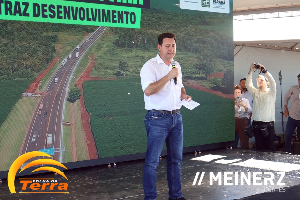 Palotina - A inauguração do contorno viário de Palotina reuniu, no dia 20 de março, autoridades federais, estaduais, municipais e representantes da C.Vale. O governador Ratinho Junior afirmou que a fórmula adotada para concluir a obra “é uma inovação na administração pública”. Ele estava se referindo ao fato de a C.Vale ter assumido a gestão da obra, contratado a empreiteira e realizado os pagamentos, sendo ressarcida em créditos de ICMS pelo Estado. Segundo ele, esse formato representou um ganho de dois anos para a finalização dos trabalhos.
