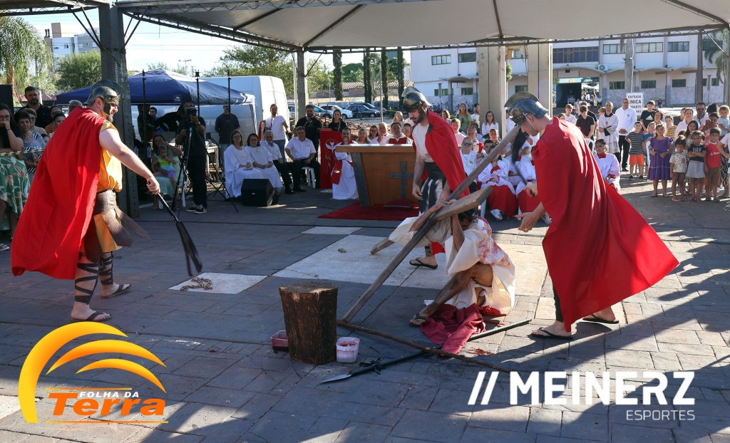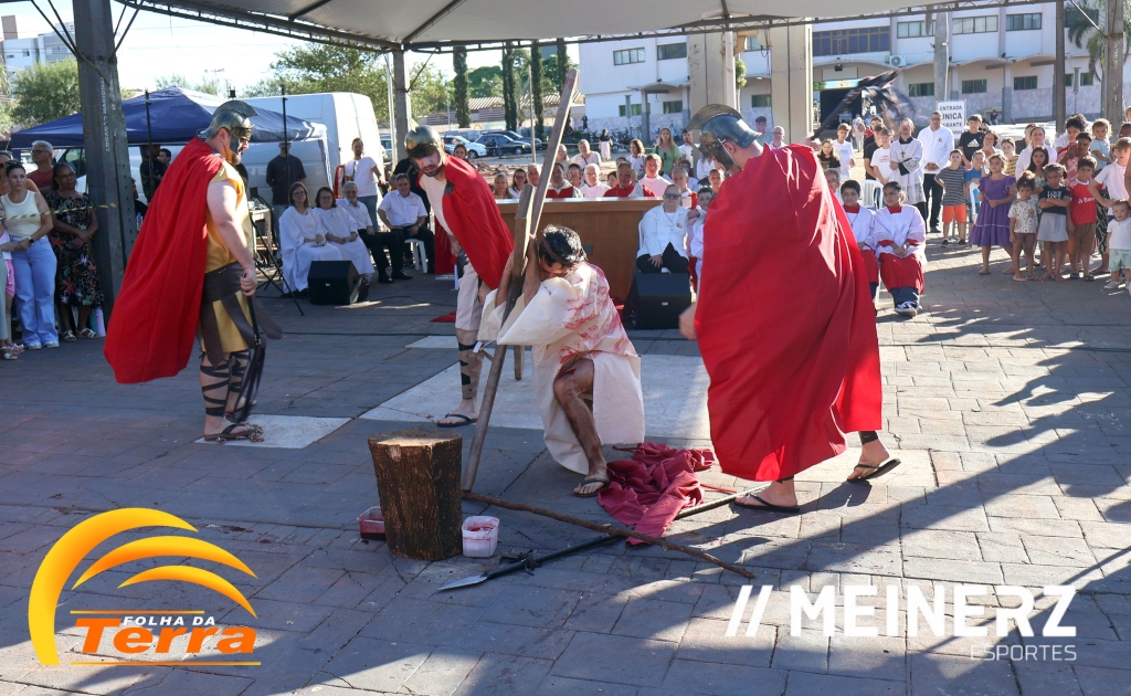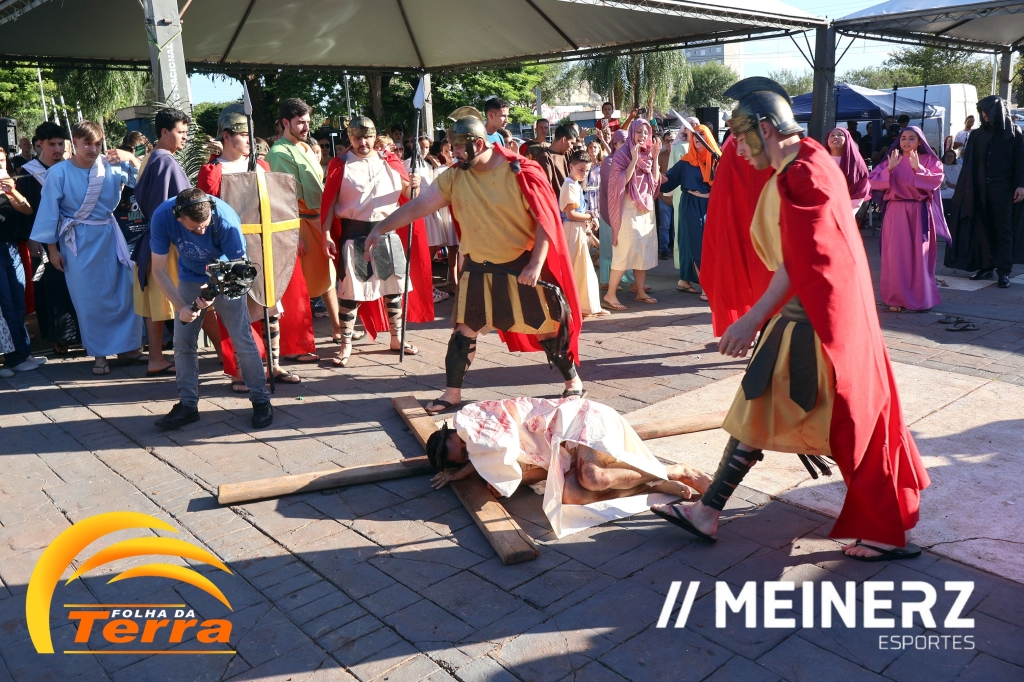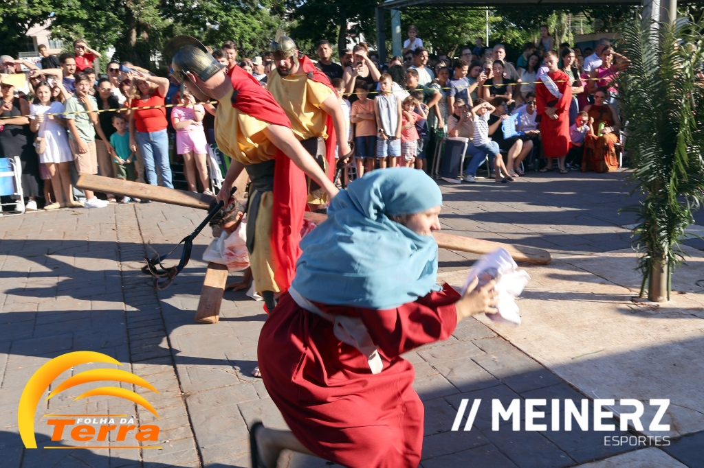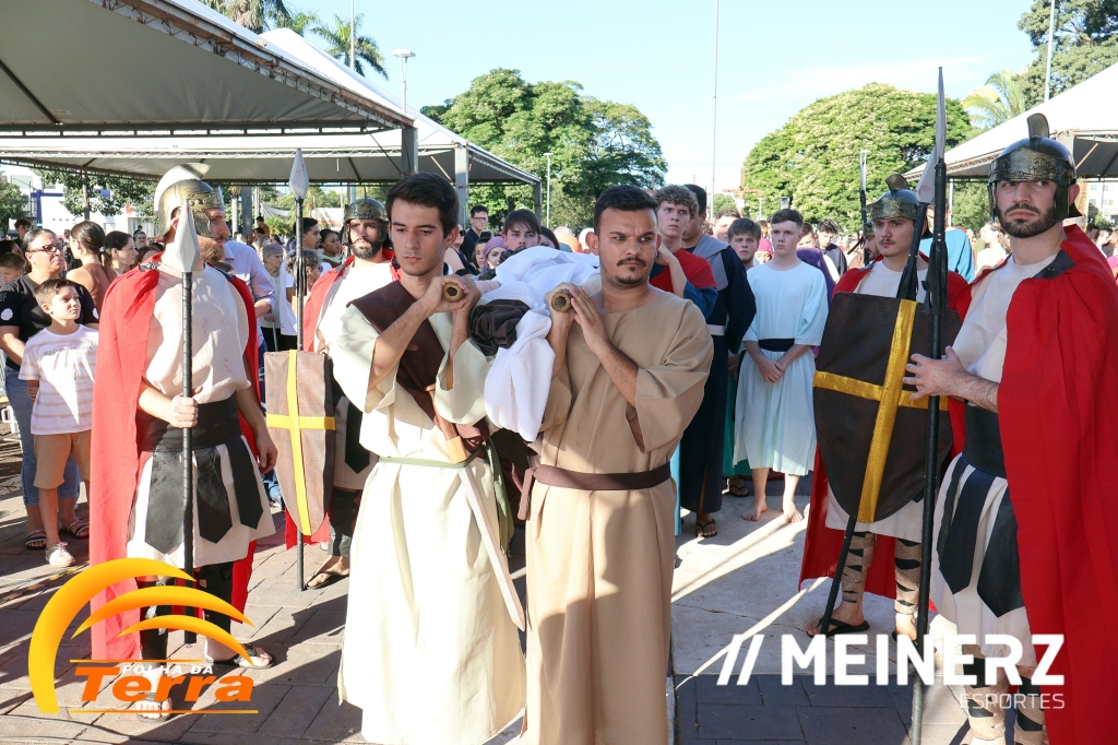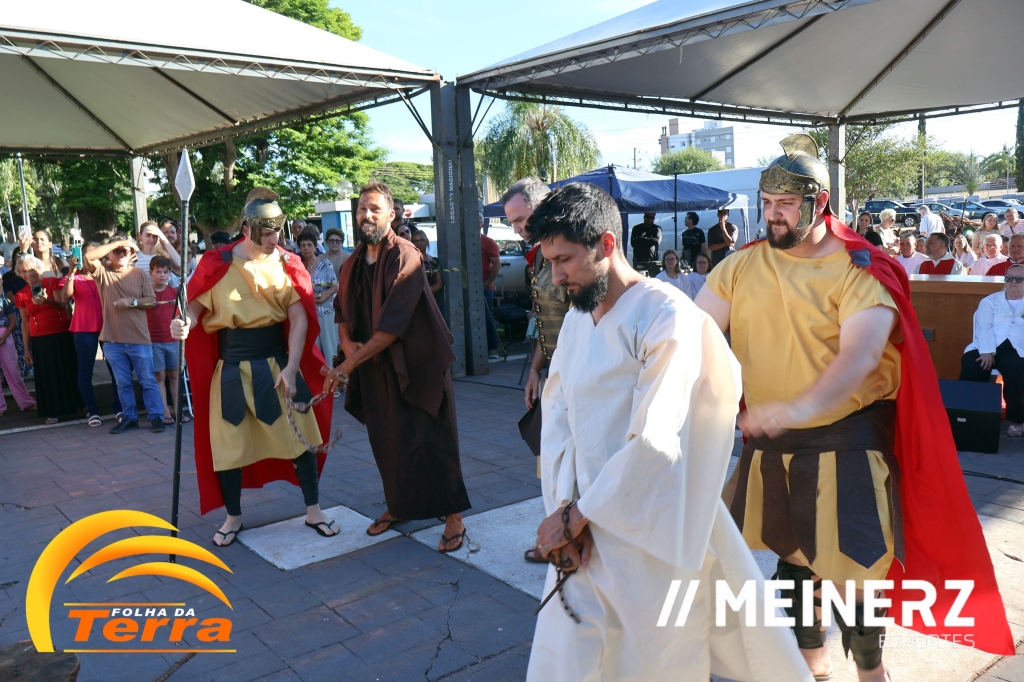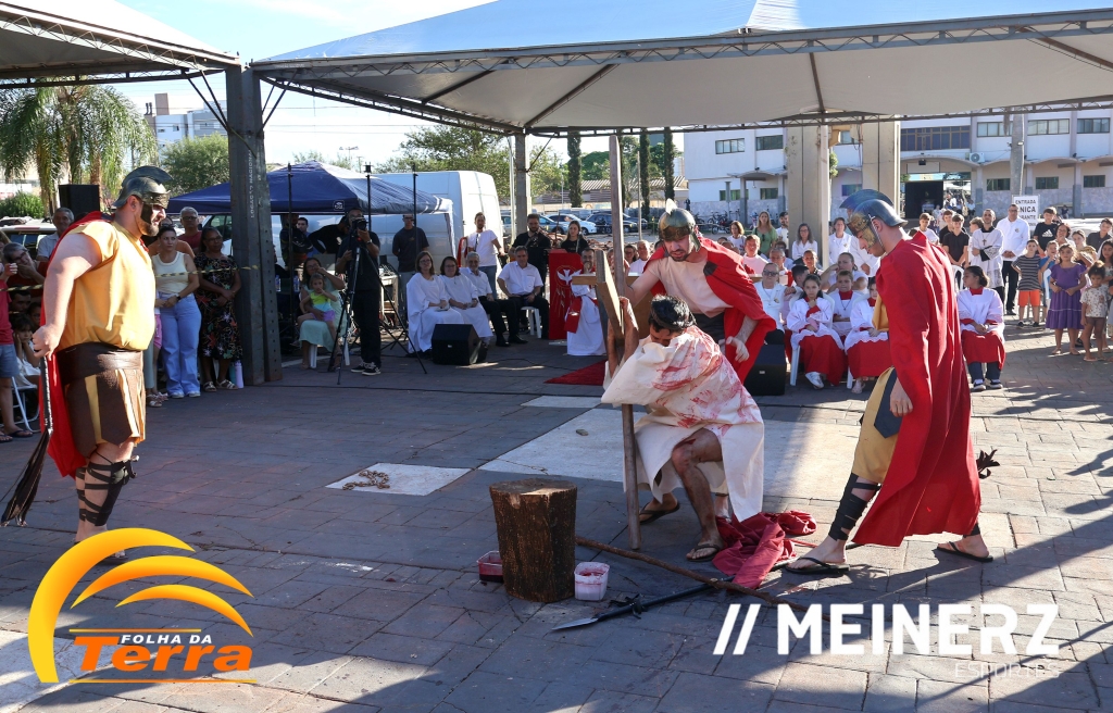 Palotina - A Paróquia São Vicente Pallotti de Palotina realizou uma programação especial na Sexta-feira Santa, dia 2, iniciando com a celebração da Exaltação da Santa Cruz. Em seguida aconteceu um momento profundamente marcante e real, a encenação da Paixão de Cristo, realizada pelos jovens do Setor Juventude, em Palotina.
