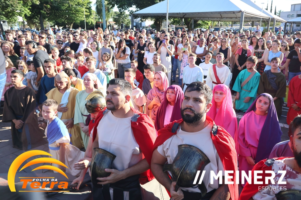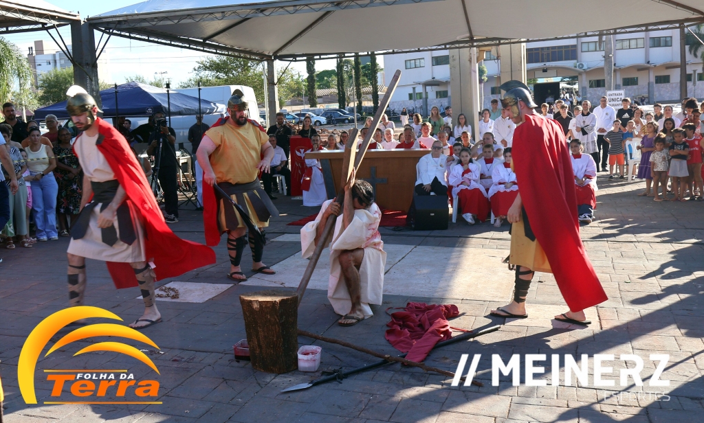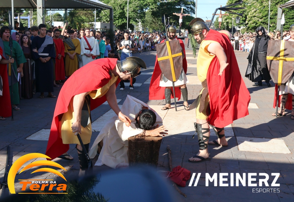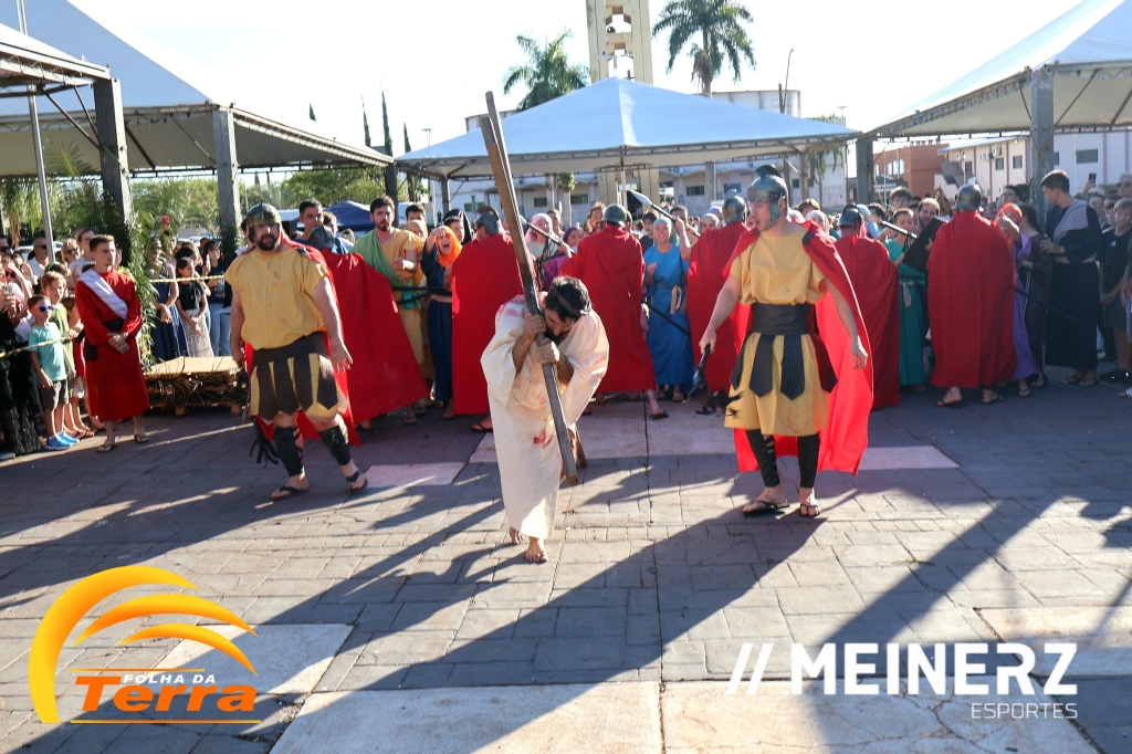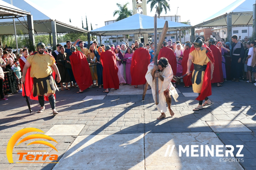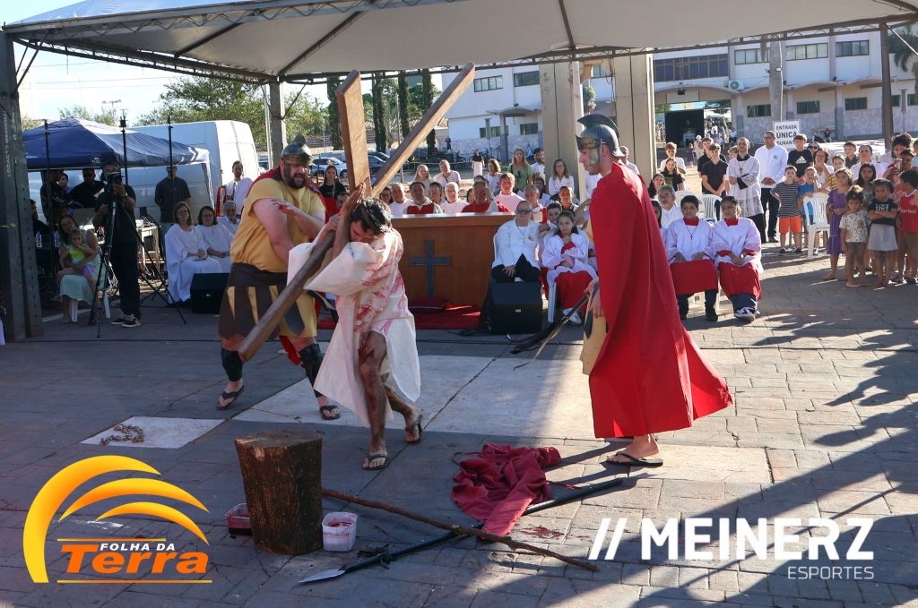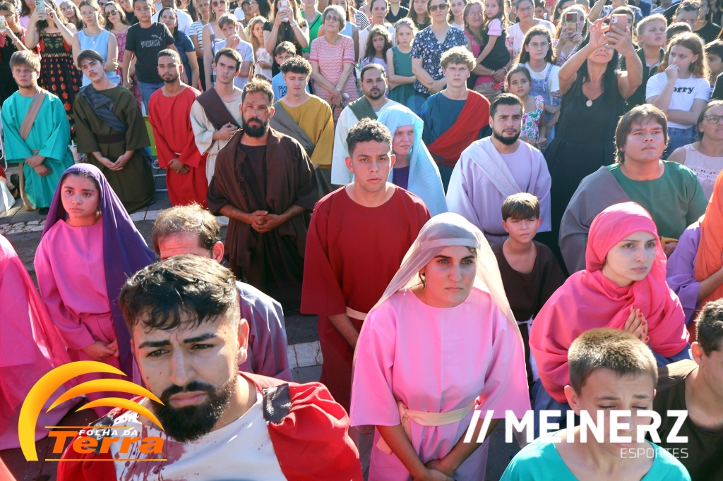 Palotina - A Paróquia São Vicente Pallotti de Palotina realizou uma programação especial na Sexta-feira Santa, dia 2, iniciando com a celebração da Exaltação da Santa Cruz. Em seguida aconteceu um momento profundamente marcante e real, a encenação da Paixão de Cristo, realizada pelos jovens do Setor Juventude, em Palotina.