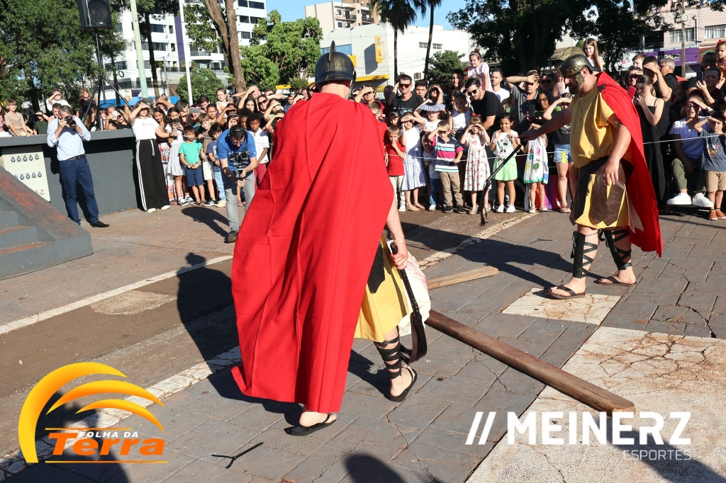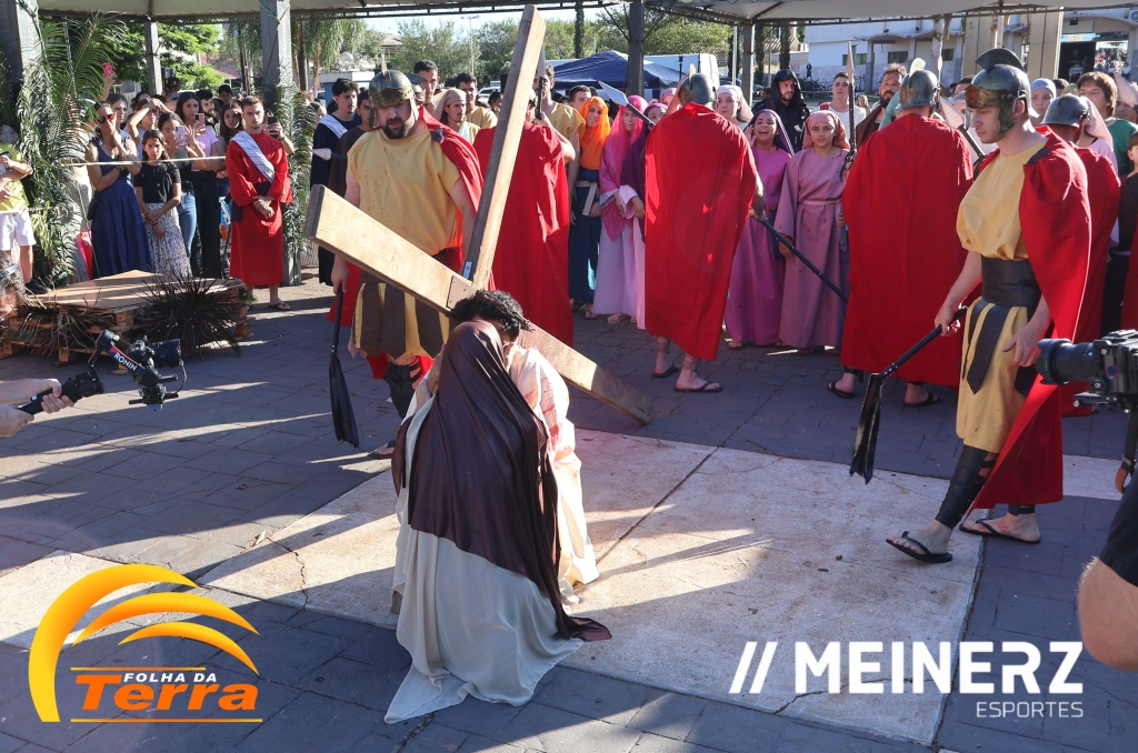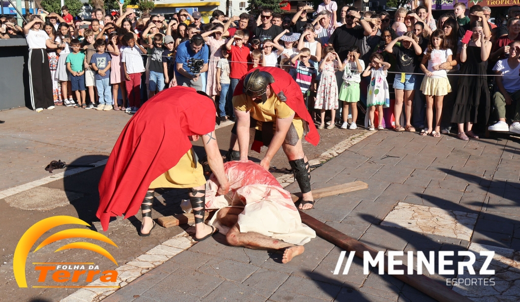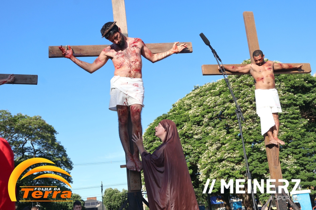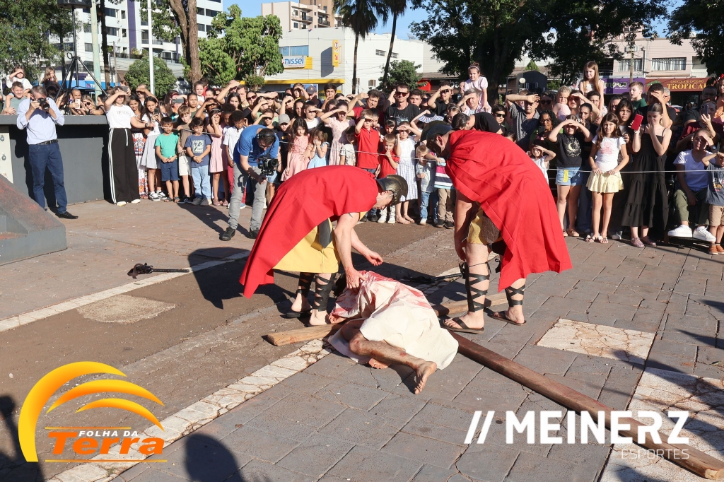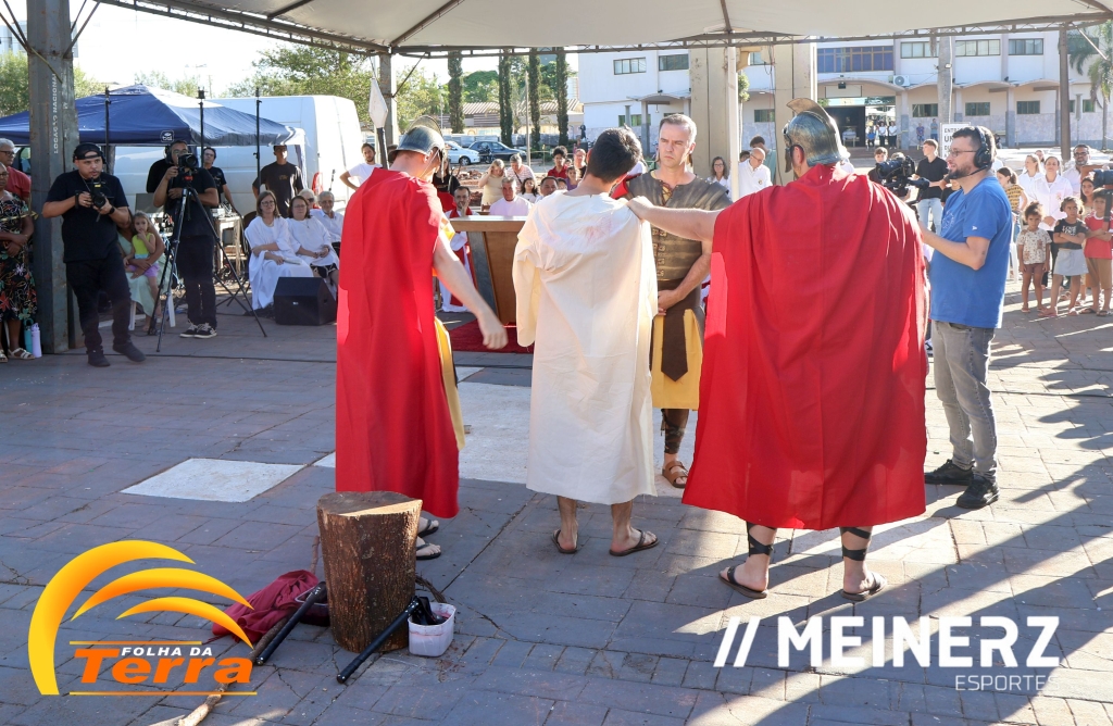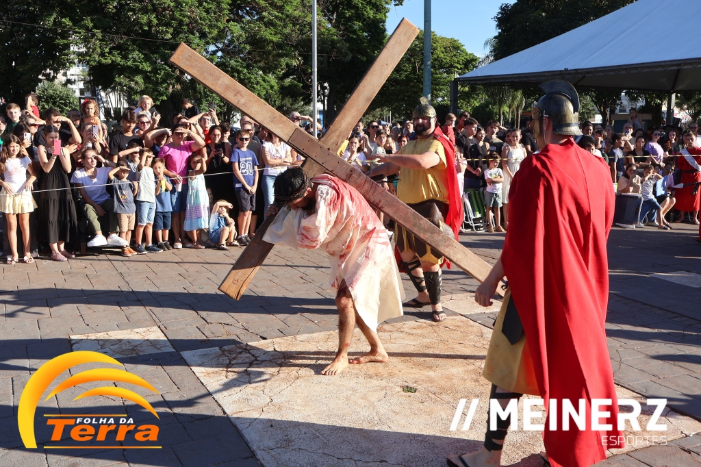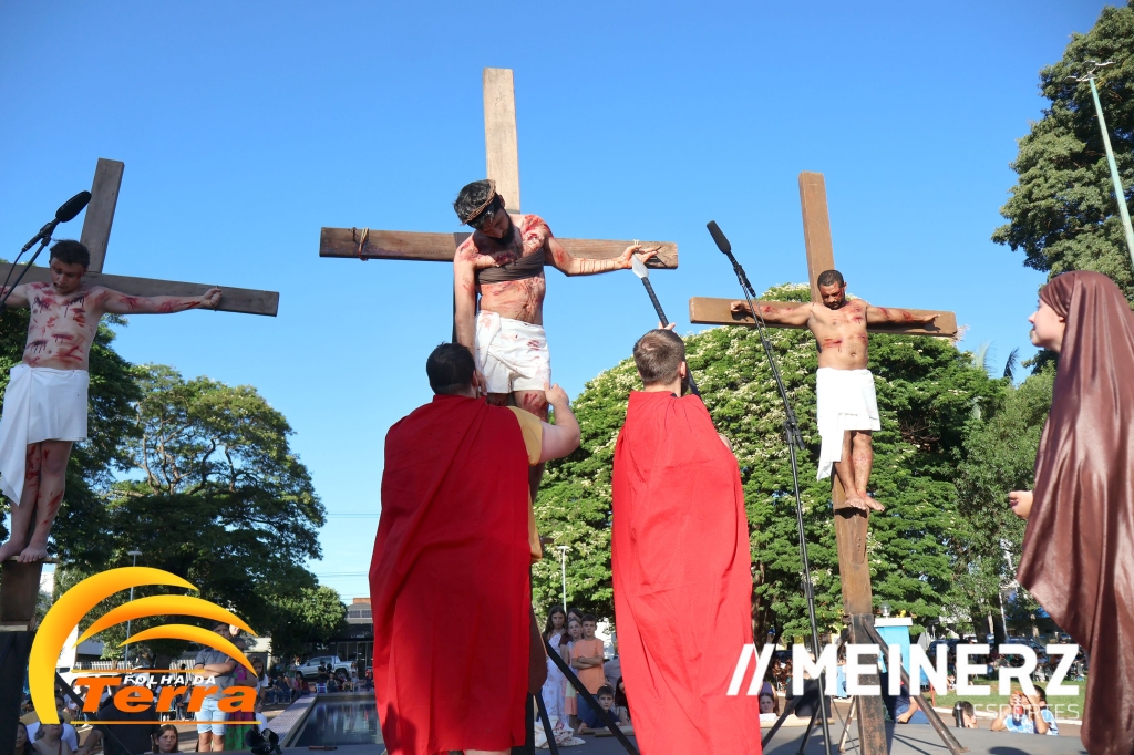 Palotina - A Paróquia São Vicente Pallotti de Palotina realizou uma programação especial na Sexta-feira Santa, dia 2, iniciando com a celebração da Exaltação da Santa Cruz. Em seguida aconteceu um momento profundamente marcante e real, a encenação da Paixão de Cristo, realizada pelos jovens do Setor Juventude, em Palotina.