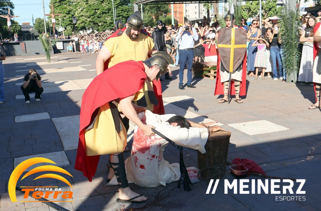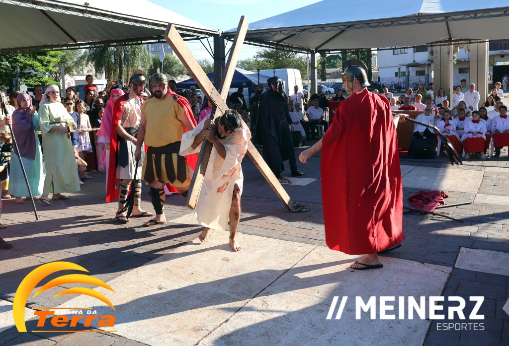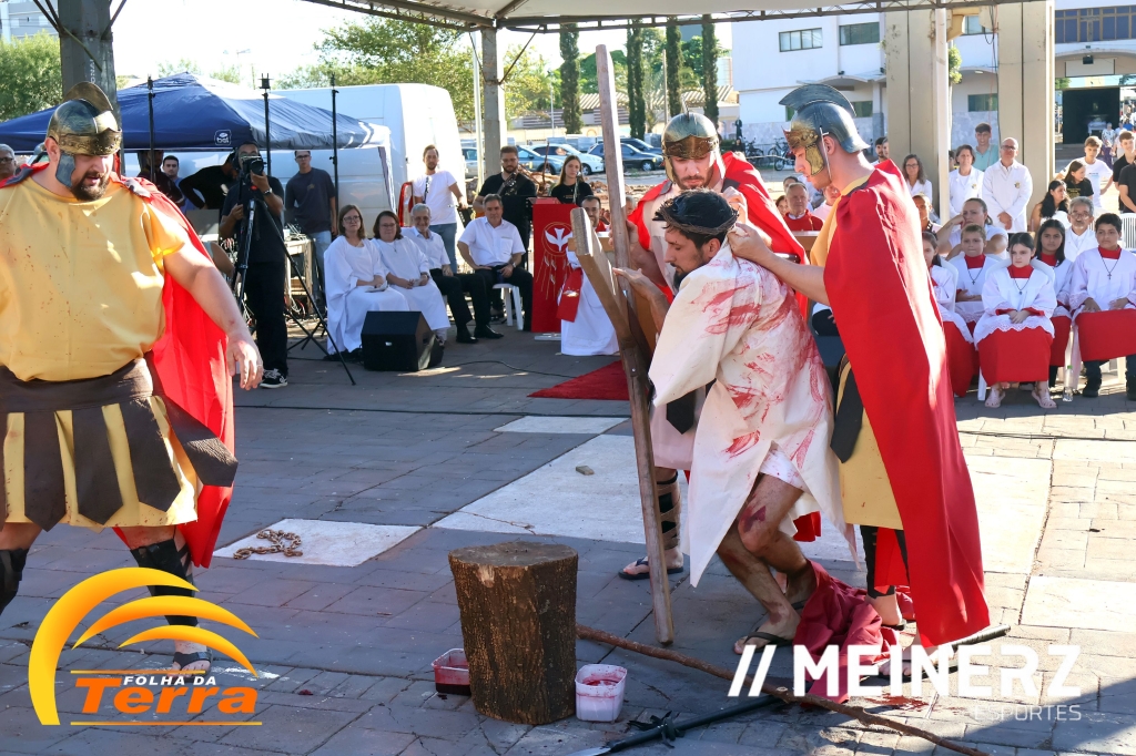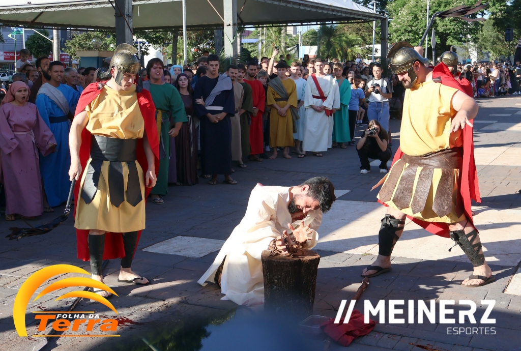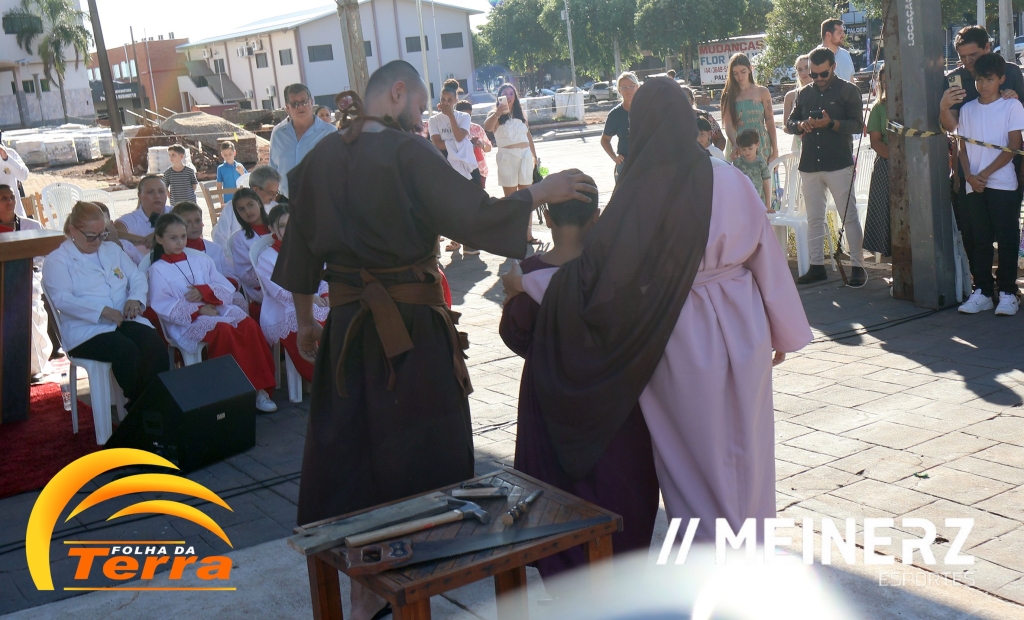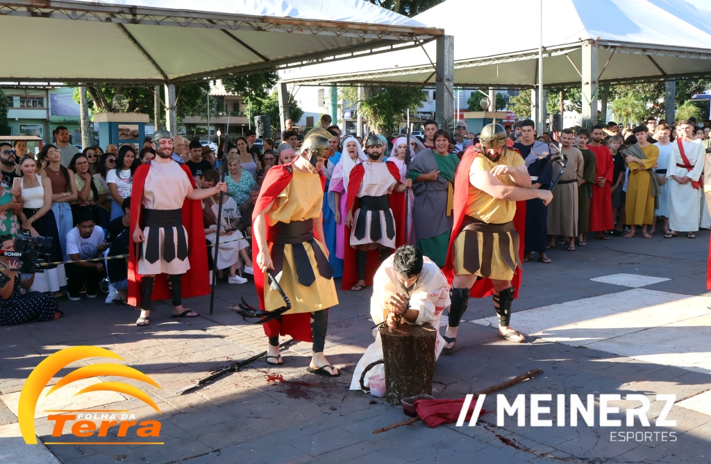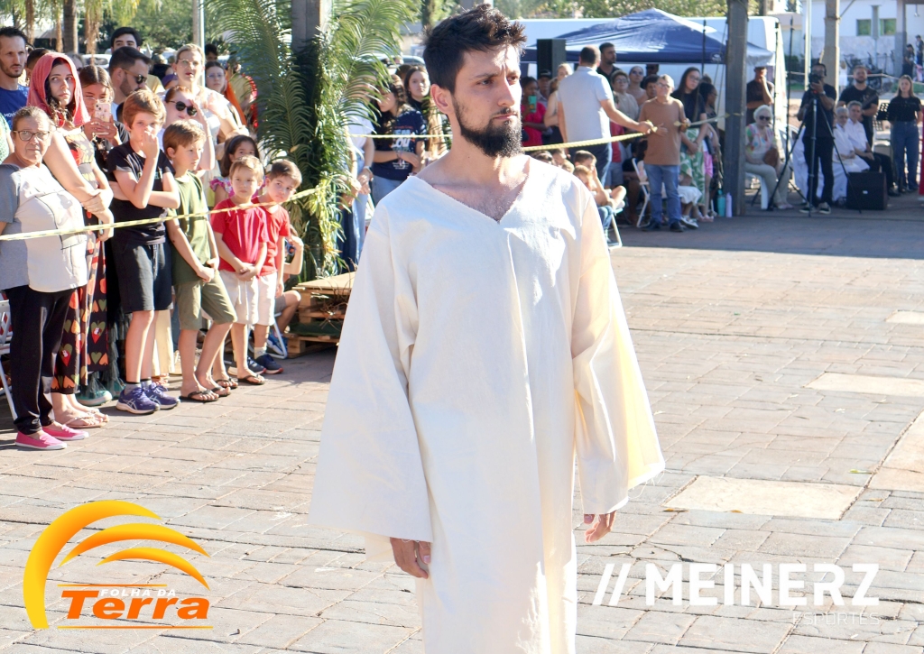 Palotina - A Paróquia São Vicente Pallotti de Palotina realizou uma programação especial na Sexta-feira Santa, dia 2, iniciando com a celebração da Exaltação da Santa Cruz. Em seguida aconteceu um momento profundamente marcante e real, a encenação da Paixão de Cristo, realizada pelos jovens do Setor Juventude, em Palotina.