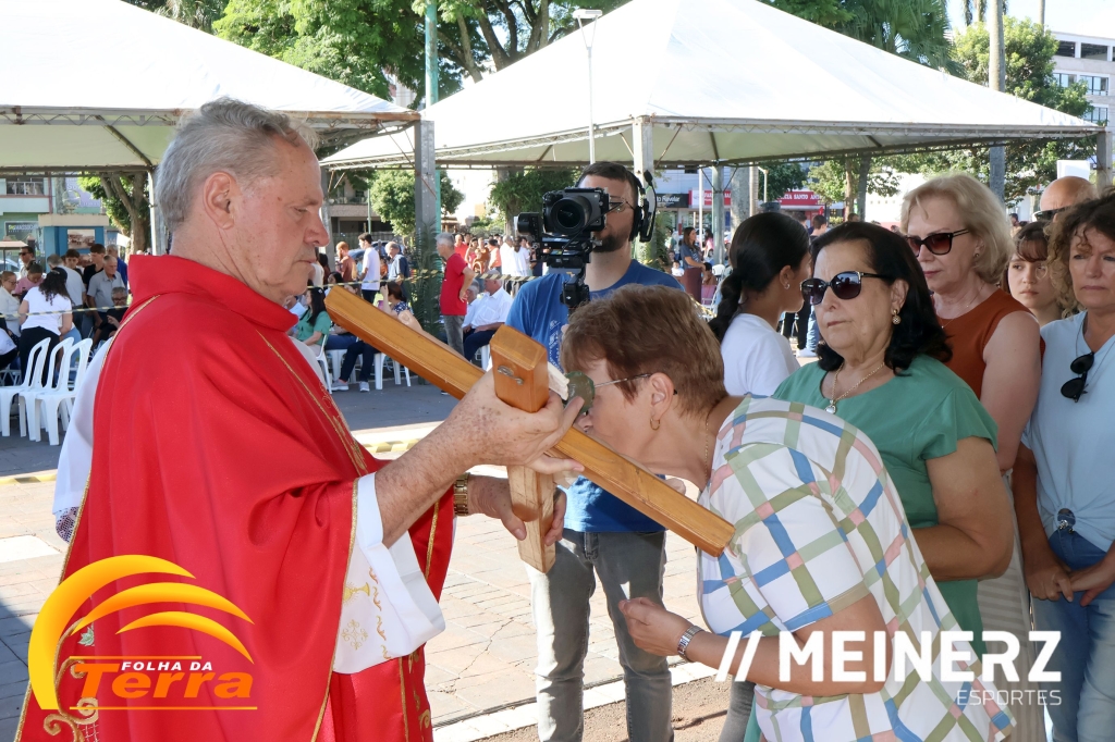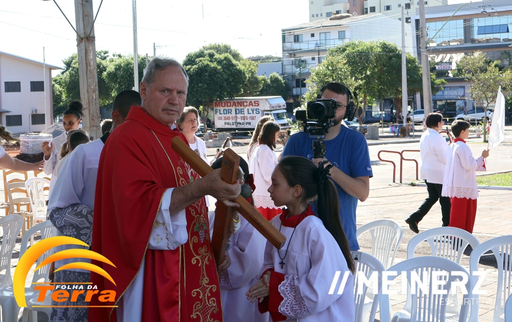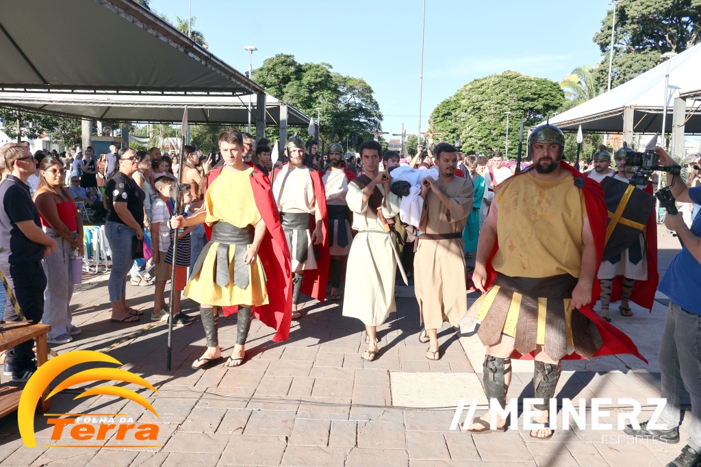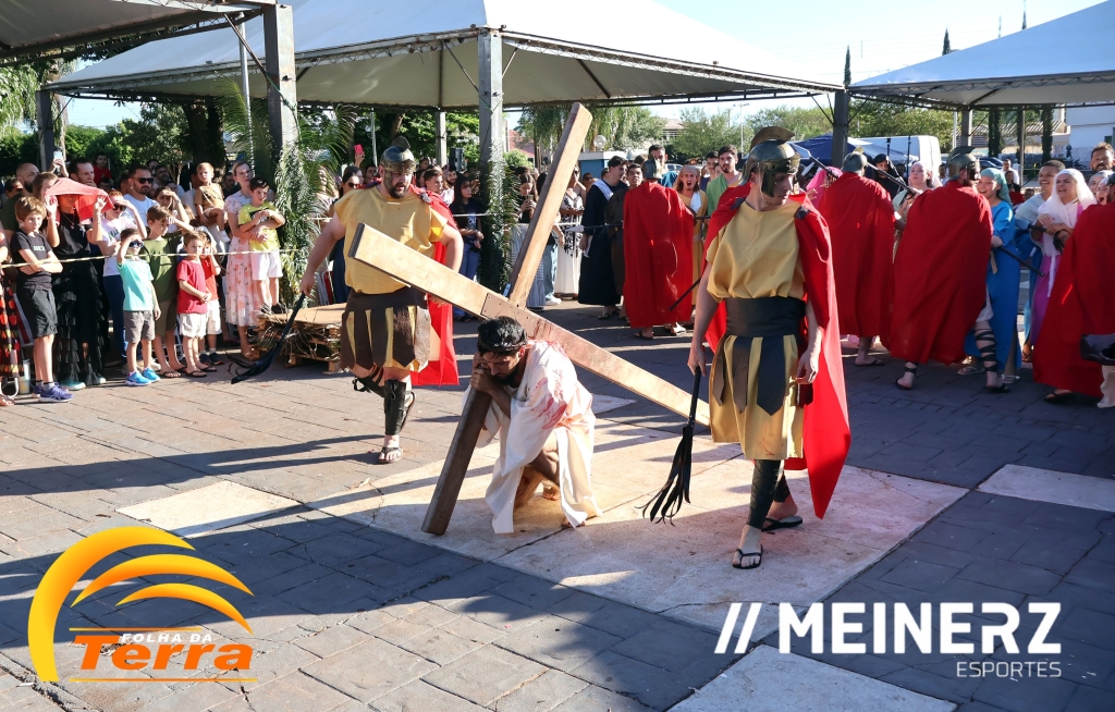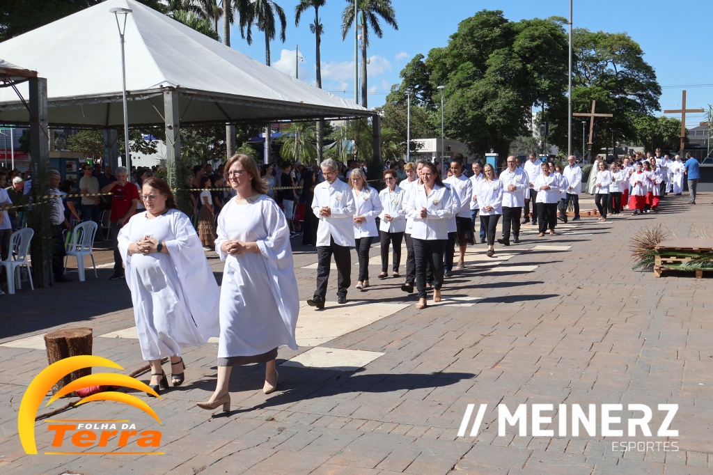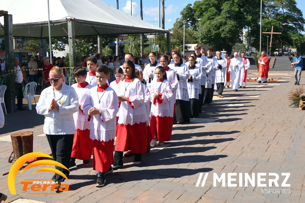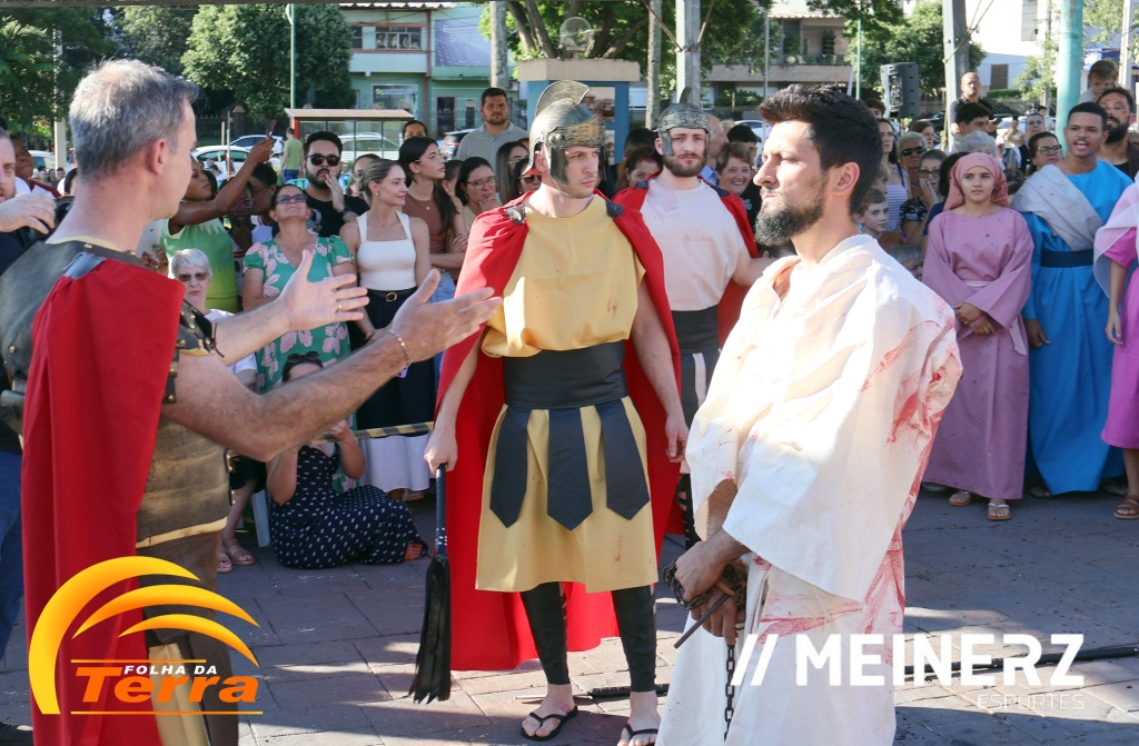 Palotina - A Paróquia São Vicente Pallotti de Palotina realizou uma programação especial na Sexta-feira Santa, dia 2, iniciando com a celebração da Exaltação da Santa Cruz. Em seguida aconteceu um momento profundamente marcante e real, a encenação da Paixão de Cristo, realizada pelos jovens do Setor Juventude, em Palotina.