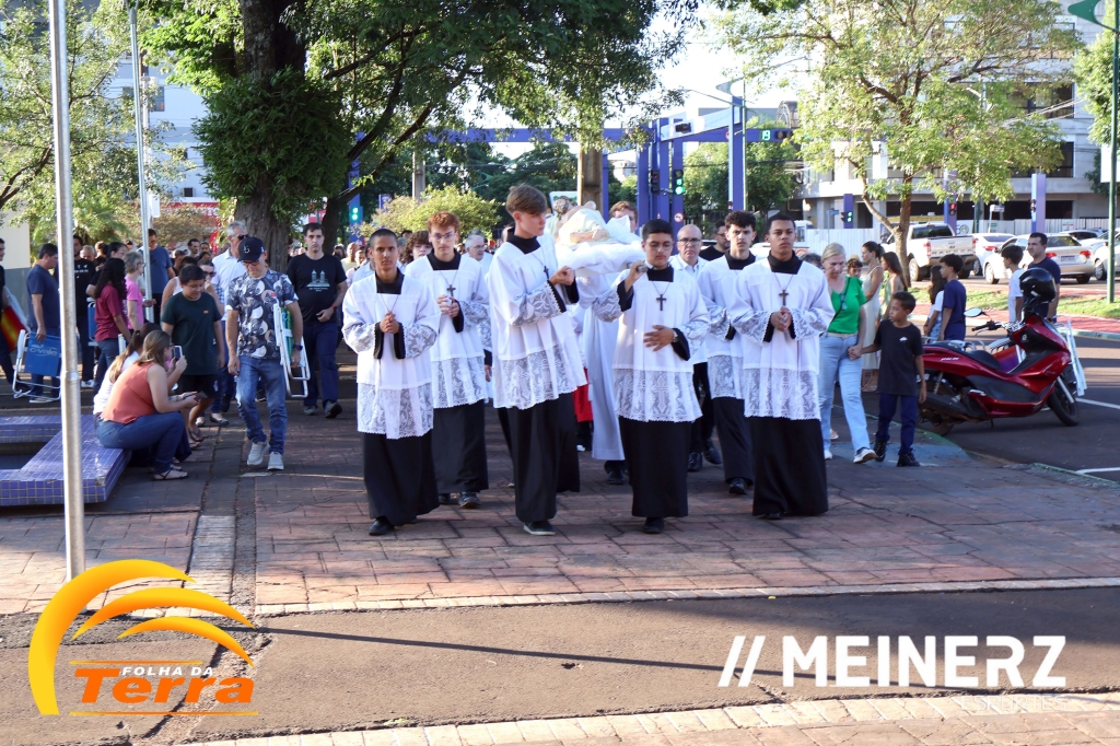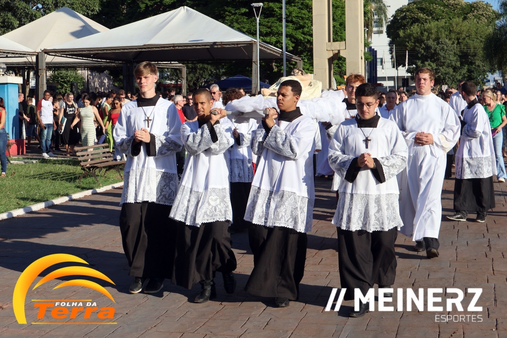 Na sequência aconteceu uma procissão com o Cristo Morto, nos aos redores da praça central e por fim, vigília com Adoração do Cristo Morto.