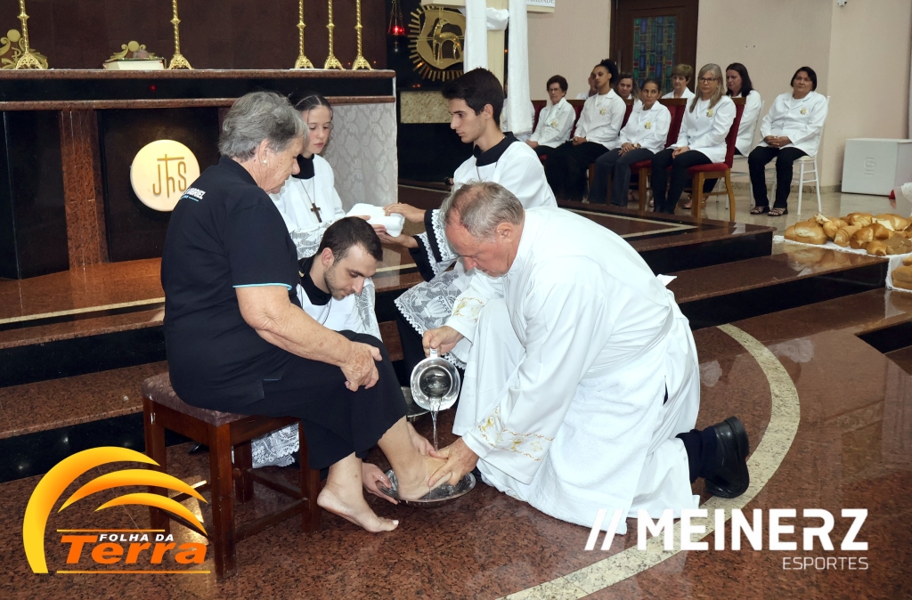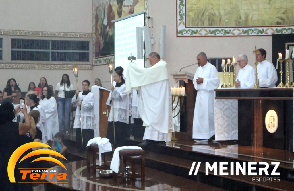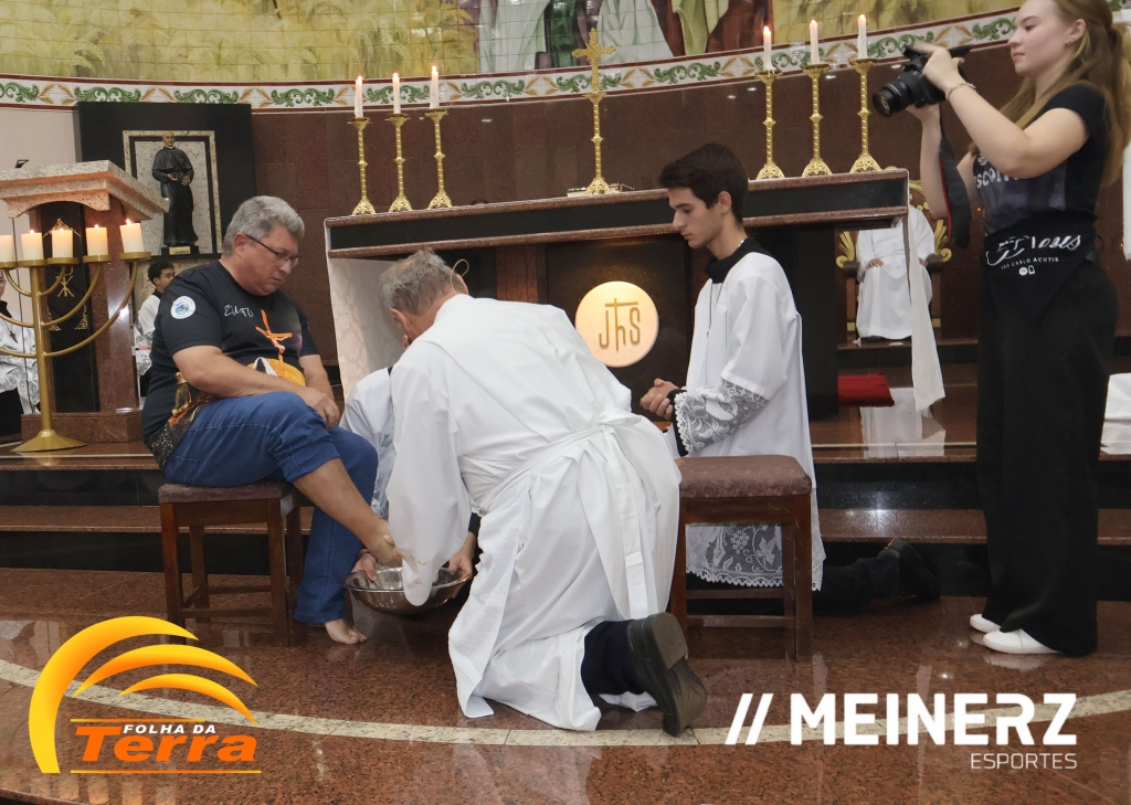 Palotina – A Igreja Matriz de Palotina ficou completamente tomada pelos fiéis que acompanharam a bela celebração da Quinta-feira Santa, marcada pela o Lava Pés, e a Instituição da Eucaristia.