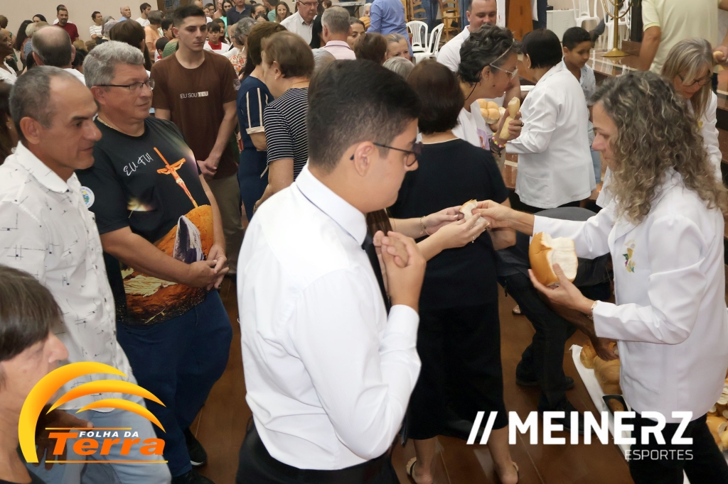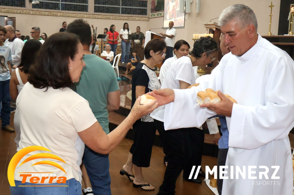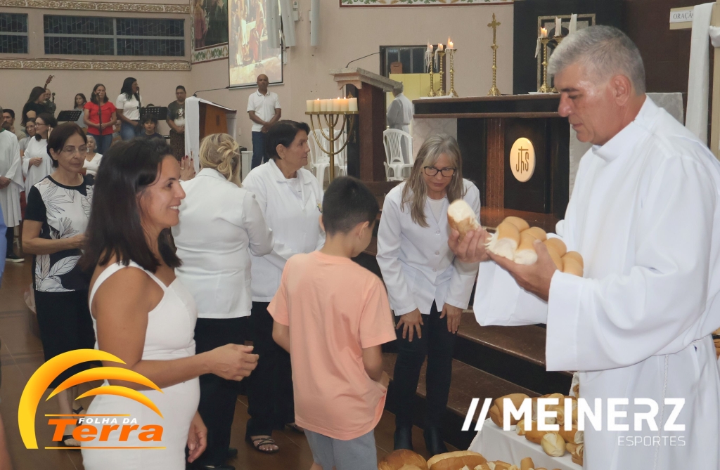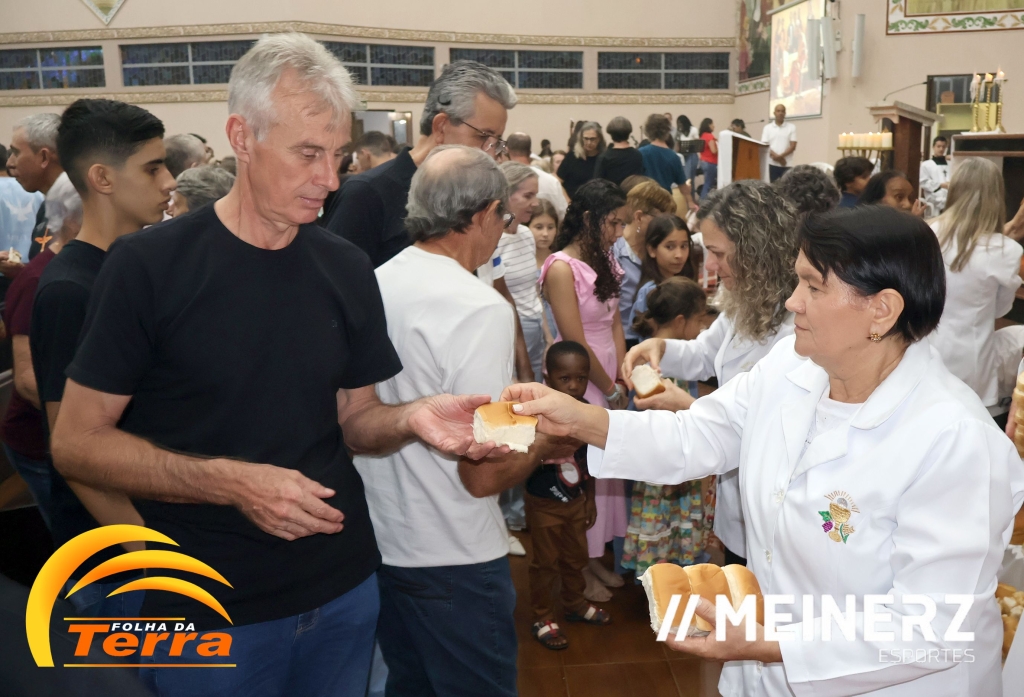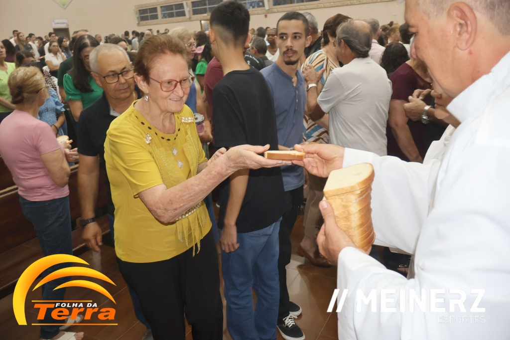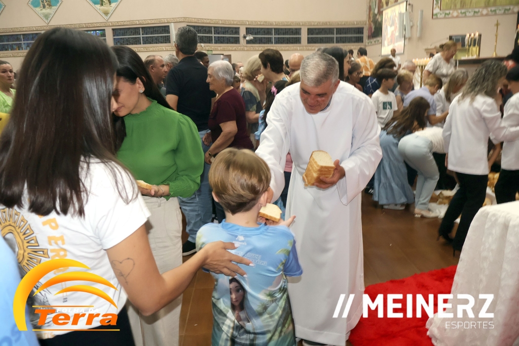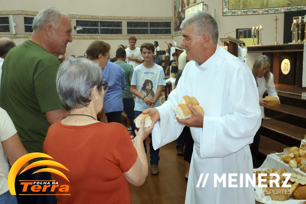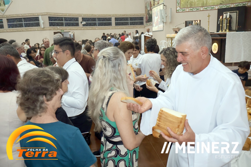 No final da missa todos participaram da partilha de pães abençoados pelo pároco, padre Moacir José Piovesan que presidiu a missa.
