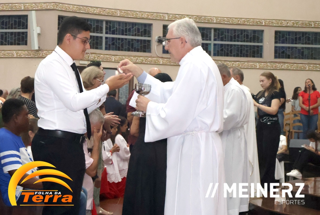 Às 08h30, Missa com batismo na Igreja Matriz e na comunidade de Osvaldo Cruz, na Capela Santo Expedito e em São Camilo.