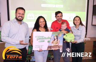 Palotina - A Sicredi Vale do Piquiri Abcd PR/SP, agência de Palotina, realizou na terça-feira, dia 7, uma cerimônia que reuniu a imprensa para a entrega simbólica do prêmio da Poupança Premiada Sicredi, no valor de R$ 5.000,00 para a ganhadora de Palotina, Carolina Santos de Lima Aguiar.