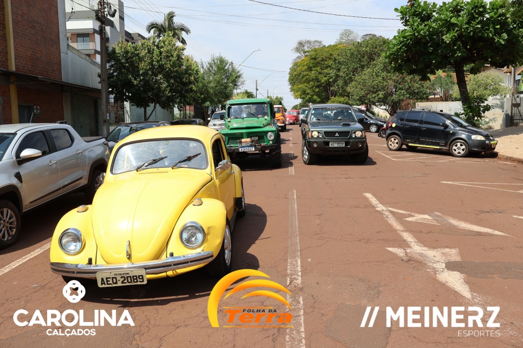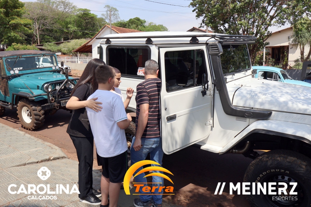 A aventura foi proporcionada pelo grupo de jeepeiros e dos carros antigos da cidade, que há anos fazem o passeio, que já se tornou tradição.