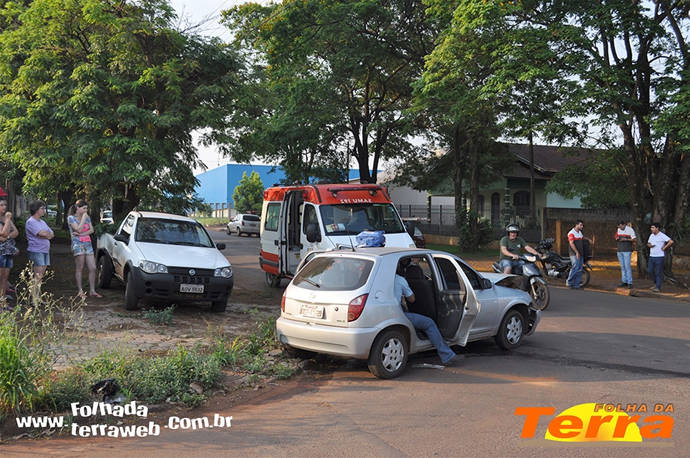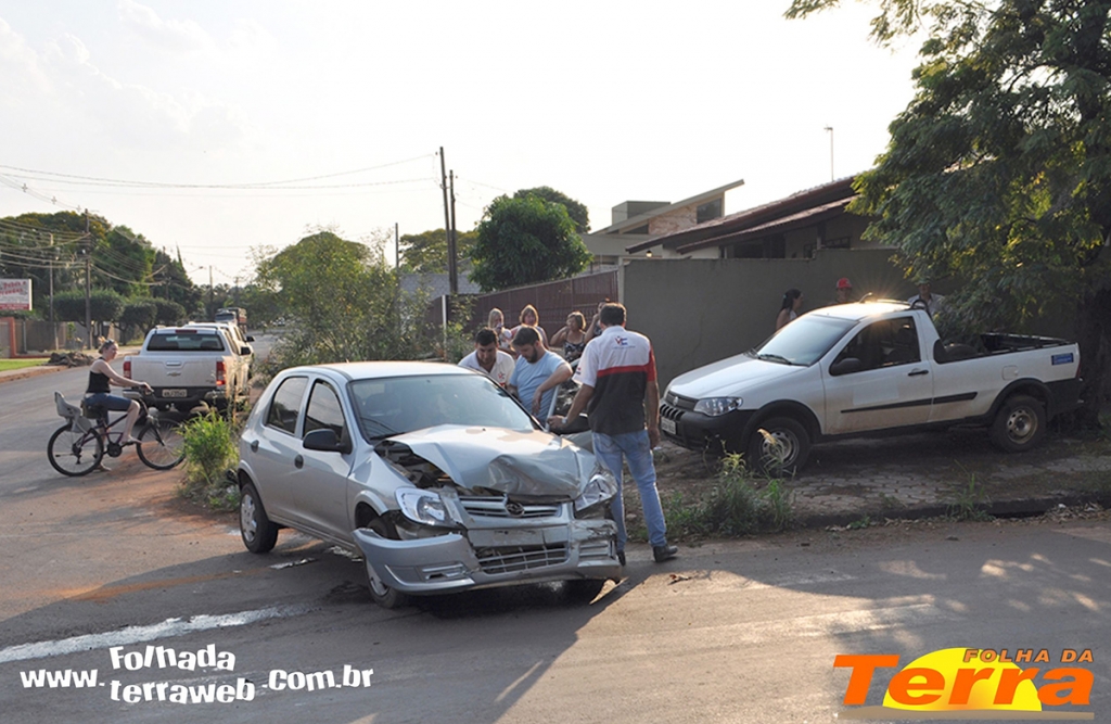 Palotina - Um acidente foi registrado na tarde desta sexta-feira, dia 18, por volta das 17h, no cruzamento das ruas Bandeirantes e Monteiro Lobato envolvendo um GM Celta, placa de Francisco Alves e um pick-up Fiat Strada, placa de Palotina.