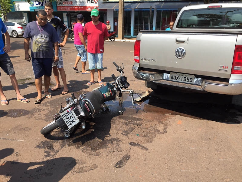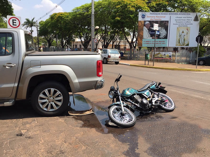 O sinistro aconteceu no cruzamento da Av. Costa e Silva com a Rua Ricardo França Triches e envolveu uma caminhonete VW Amarok, placas AQX-1959 e uma motocicleta Honda Titan, placas HSK-8727.