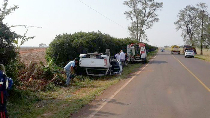 Segundo informações o condutor da S-10 perdeu o controle da direção vindo a capotar.