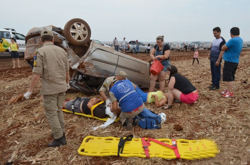Assis Chateaubriand - Um capotamento resultou em duas pessoas feridas por volta das 09h15, deste sábado (18), na rodovia PR 239, trecho que liga Assis Chateaubriand a Toledo, em Assis Chateaubriand, proximidades da comunidade de Bragantina.