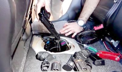 As cinco armas, além de seis carregadores de pistola, estavam dentro do tanque de combustível de um automóvel Volkswagen Golf. Os policiais abordaram o veículo na BR 487, em frente ao Posto Porto Camargo da PRF.