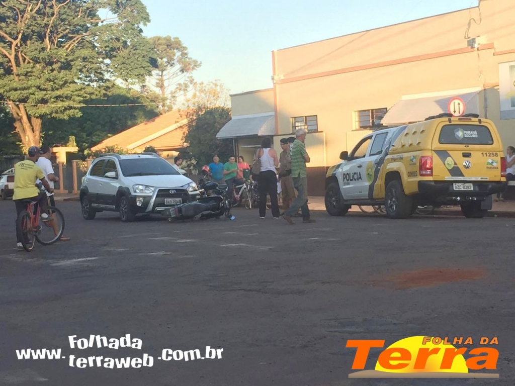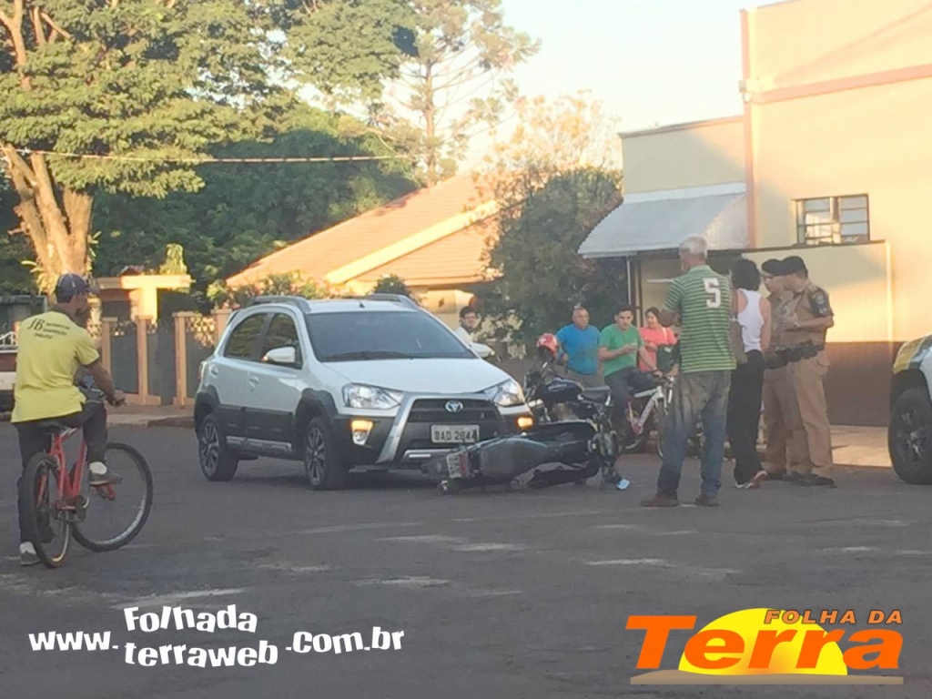 Palotina – Os acidentes de trânsito continuam a acontecer praticamente diariamente em Palotina. Na tarde de terça-feira, dia 29, policiais militares e a equipe do Samu foram acionados para atender mais um ocorrido no cruzamento das ruas 5 de Julho e Ipiranga, próximo a Escola Joaquim, em Palotina e envolveu um veículo Toyota Etios, branco e uma motoneta Honda Dream, de cor preta.
