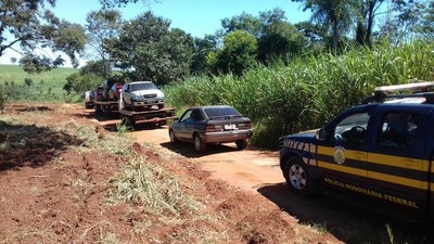 Após receber a informação de que havia veículos suspeitos transitando por uma estrada rural nas imediações da BR 272, uma equipe da PRF se dirigiu até o local.