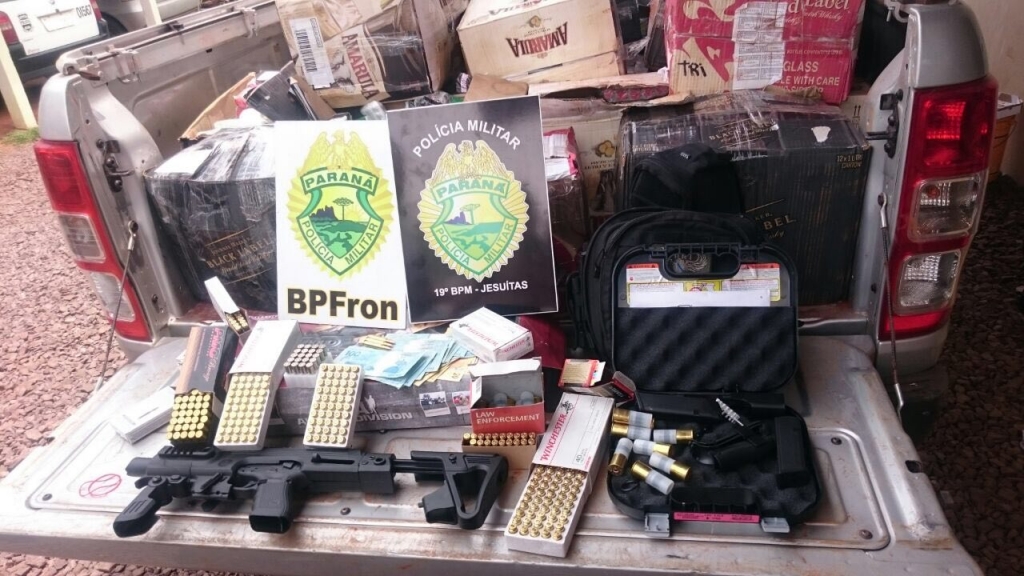 Jesuítas - Na manhã de segunda-feira, dia 24, por volta das 10h, policiais militares do BPFron (Batalhão de Polícia de Fronteira) e policiais militares do 19º BPM (Batalhão de Polícia Militar) realizaram apreensão de uma arma, diversas munições, anabolizantes e mercadorias do Paraguai na cidade de Jesuítas.