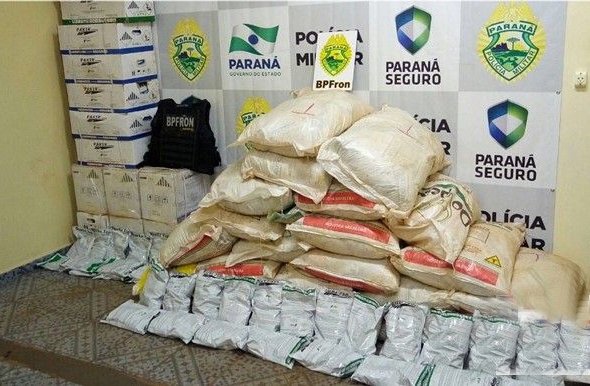 Frente ao cenário, a guarnição adentrou na residência, onde encontrou aproximadamente 636 quilos de agrotóxico oriundos do Paraguai.