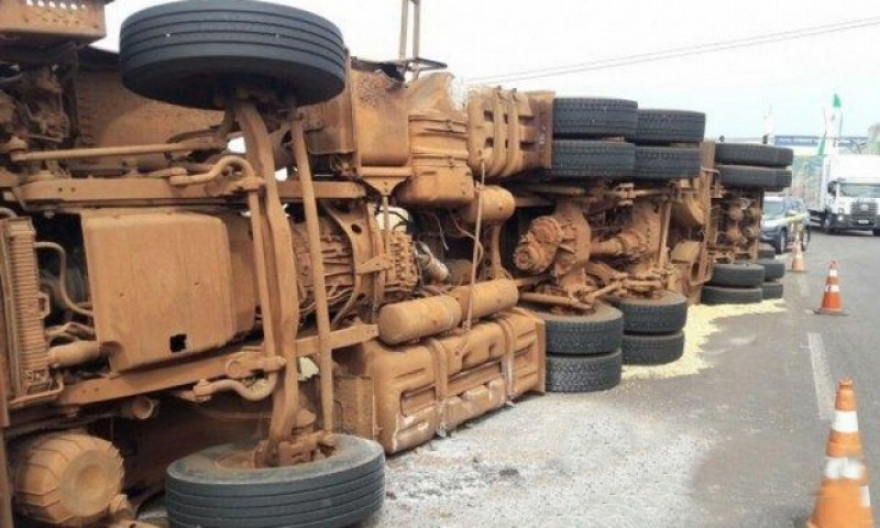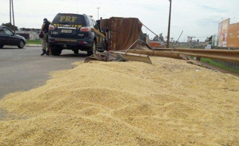 Foz do Iguaçu - Na manhã desta quinta-feira, dia 23, um acidente com uma carreta que transportava soja, tombou na BR-277, em Cascavel.
