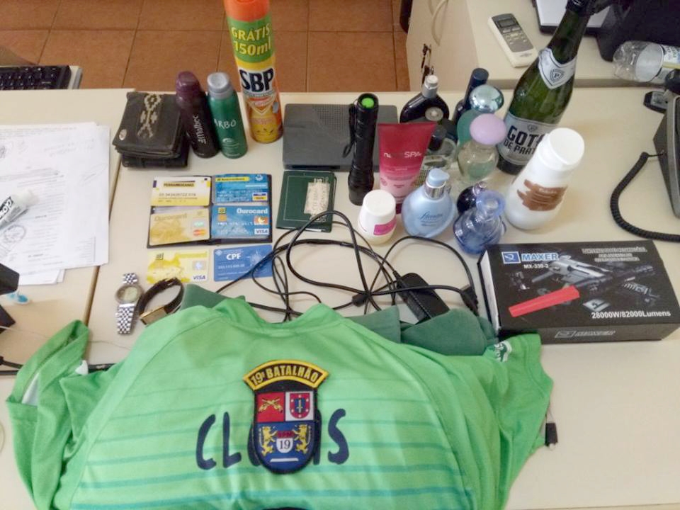 Terra Roxa – Na quarta-feira, dia 24, por volta das 13h50, a equipe de serviço da PM de Terra Roxa foi informada de que um indivíduo estaria deixando uma residência de posse de duas bolsas. Com base nas informações e características, a equipe iniciou diligências e em ato contínuo abordou o sujeito na Av. da Saudade, esquina com a Rua Vicente Reis. Durante a abordagem foi localizado no interior das bolsas, cartões de créditos, roupas e objetos da vítima. Em seguida a equipe se deslocou até a residência arrombada e constatou a veracidade dos fatos, presenciando todos os cômodos revirados. Diante disso o autor e os pertences foram encaminhados ao Destacamento da PM de Terra Roxa para as devidas providências.