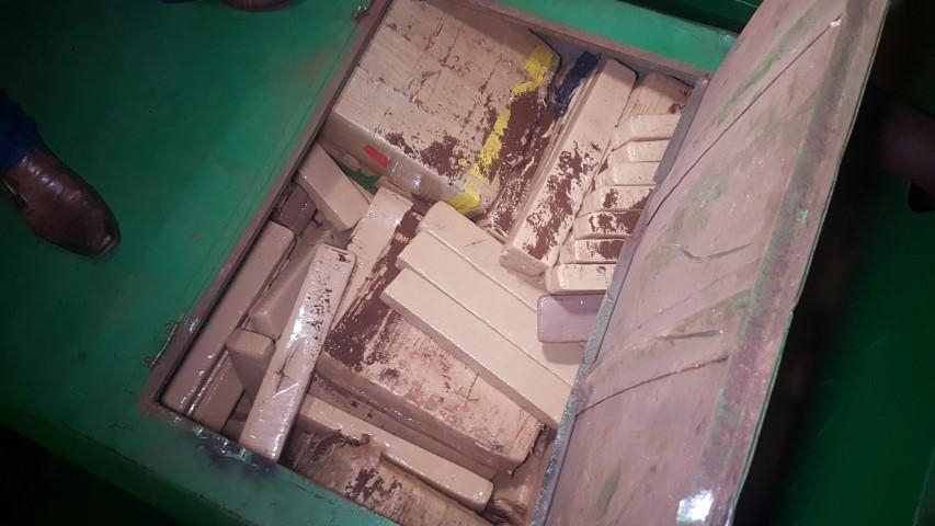 O motorista apresentou nota fiscal e relatou que desconhecia a presença de entorpecentes na parte graneleira da máquina. O compartimento foi soldado e deu trabalho para os policiais abrirem.
