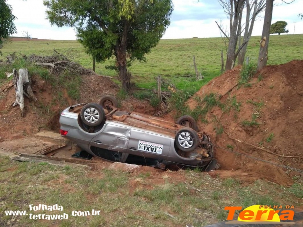O motorista, que é taxista, contou que foi desviar de uma Parati que vinha pela contramão fazendo uma ultrapassagem forçada perdeu o controle e acabou capotando o veículo. Apesar do susto ninguém se feriu.