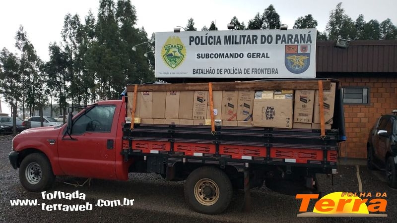 Na carga da camioneta foram encontradas aproximadamente 120 caixas de cigarros contrabandeadas do Paraguai