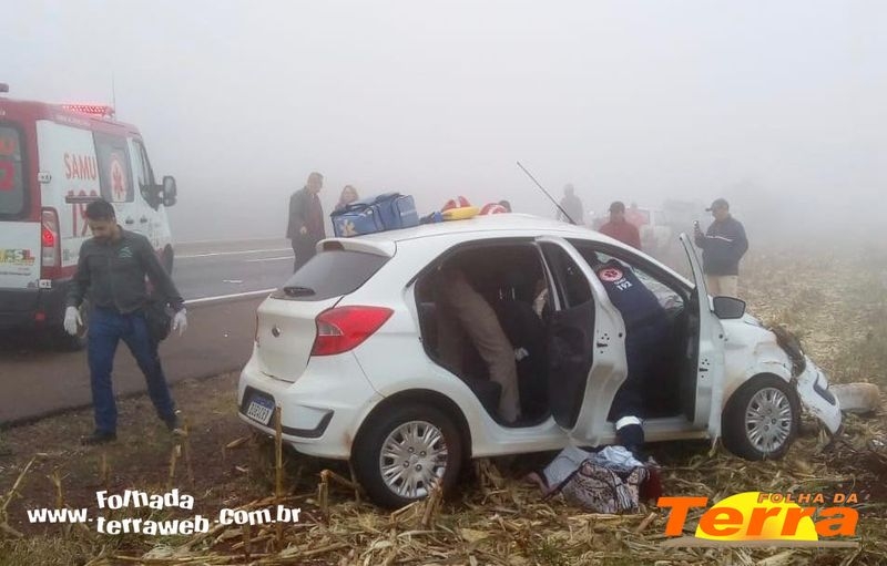 Um grave acidente de trânsito foi registrado por volta das 13h15 desta quarta-feira (26) na BR-163, entre Toledo e Marechal Cândido Rondon. A colisão envolveu uma viatura da PRE, um Ônix e um Ford Ká.