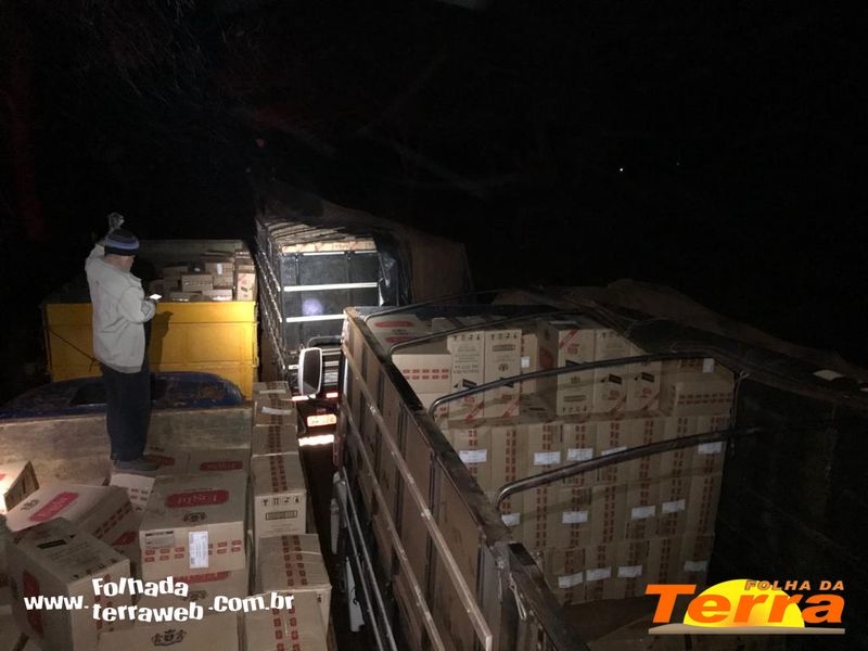 Na madrugada desta terça-feira (02/07), mais uma grande apreensão foi realizada por equipes da Operação Integrada entre POLÍCIA FEDERAL e o BPFRON Batalhão de Polícia de Fronteira através do Pelotão C.O.B.R.A. Corpo de Operações de Busca e Repressão Aquática, com apoio da SEOPI Secretaria de Operações Integradas/MJSP. Policiais realizavam patrulhamento de rotina quando perceberam movimentação suspeita em uma área rural de Guaíra-PR. Na aproximação foi possível visualizar 02 caminhões boiadeiros realizando transbordo de cigarros paraguaios para outros 02 caminhões. Na tentativa de abordagem, a equipe logrou êxito em realizar a prisão de 02 contrabandistas. No local foram apreendidos 04 caminhões carregados com aproximadamente 1.800 caixas de cigarros de origem paraguaia - prejuízo superior a R$ 4,5 milhões aos criminosos.