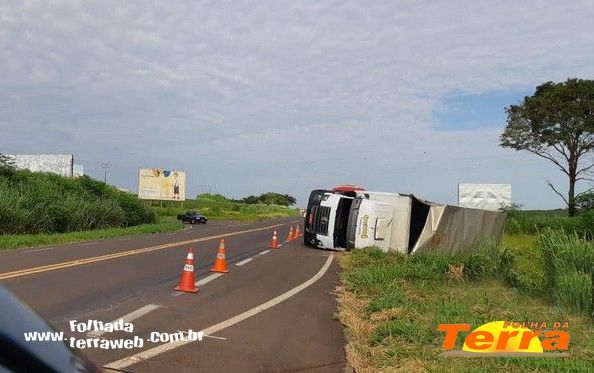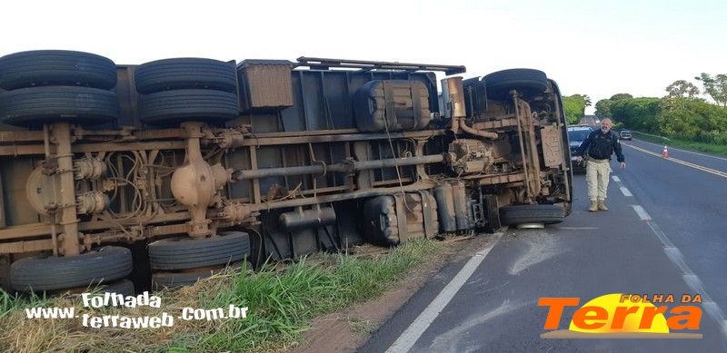 Terra Roxa - Um caminhão que transportava ração tombou no final da tarde de segunda-feira, dia 27, na BR 272, na BR 272, no trevo de acesso a cidade de Terra Roxa.