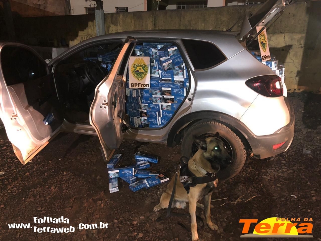 Terra Roxa - No último domingo, 31, Policiais militares do BPFron - Batalhão de Polícia de Fronteira, em mais uma ação da Operação HÓRUS quando em patrulhamento pela cidade de Terra Roxa, deram ordem de parada ao veículo Renalt Captur, a qual não foi acatada, inciando-se assim acompanhamento tático, quando em dado trecho o condutor abandonou o veículo, que ao ser checado estava carregado com 35 caixas de cigarros contrabandeados do Paraguai. O veículo e a mercadoria foram encaminhados a Receita Federal de Guaíra.