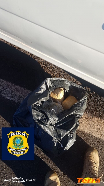 Nesta terça-feira (23), por volta das 18 horas uma equipe da PRF abordou em Guaíra, um veículo Gol, da cidade de Perobal (PR), conduzido por uma mulher de 26 anos e mais dois passageiros, quando ao verificar o porta-malas, foram encontrados tabletes de maconha, dentro de um saco de cor preta, totalizando aproximadamente 8 quilogramas.