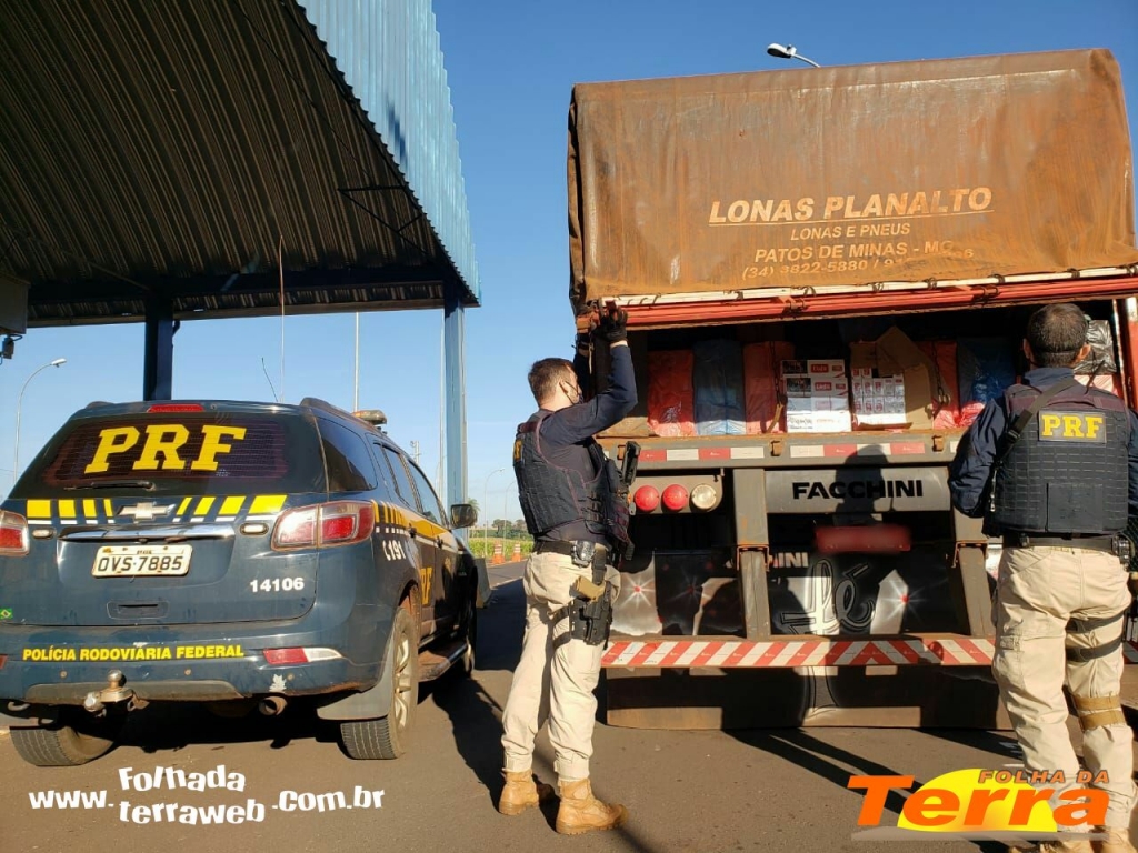 A Polícia Rodoviária Federal (PRF) apreendeu na manhã de domingo (31), em Terra Roxa, um bitrem graneleiro carregado de cigarros contrabandeados do Paraguai.