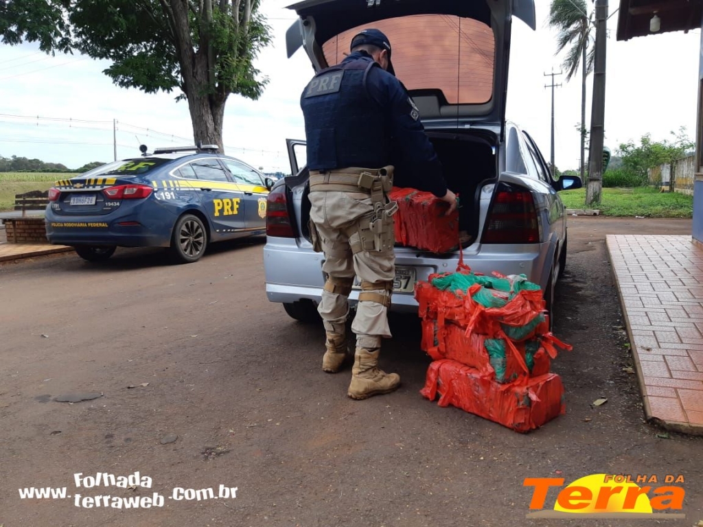 Durante a vistoria, os policiais encontraram 61 quilos de maconha que eram transportados no carro, de propriedade de sua mãe.