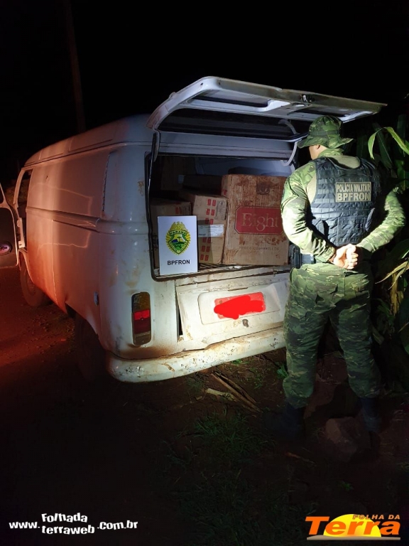 Terra Roxa - Na madrugada de quinta-feira, dia 9, policiais militares do BPFRON - Batalhão de Polícia de Fronteira, em ação da Operação Hórus quando realizavam patrulhamento na área rural de Terra Roxa, avistaram um veículo VW/Kombi abandonado em uma estrada. No veículo foram encontrados pacotes de cigarros contrabandeados. Ao realizar buscas nas proximidades, foram localizados mais pacotes de cigarro, totalizando cerca de 2.500 pacotes. O veículo e os cigarros foram apreendidos e encaminhados aos procedimentos cabíveis. Estima-se um prejuízo de R$ 150.000,00 aos contrabandistas da região.