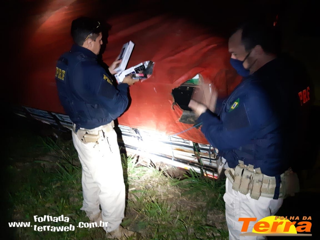 Ao verificar a carga, os policiais encontraram a carroceria carregada com aproximadamente 300 mil maços de cigarros de marca paraguaia. A carga foi avaliada em R$ 900 mil.